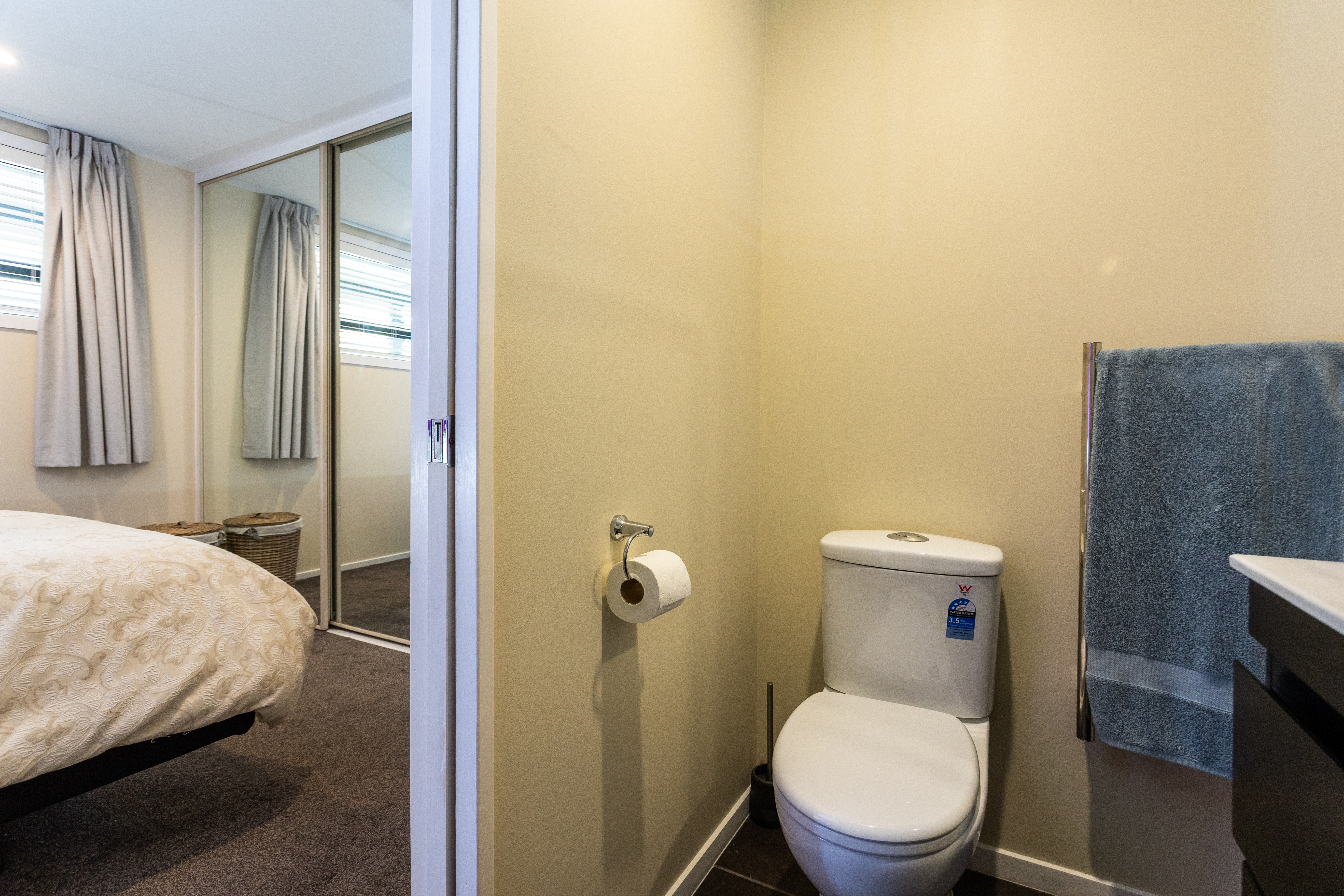 This living space extends to a covered spacious deck, offering captivating Auckland City views that blend modern architecture with charming character buildings. The Sky Tower and the distant harbor create a truly fabulous backdrop both day and night. The modern kitchen is perfect and you get to see those views while preparing your meals The bedroom features an en-suite bathroom and is nice and spacious.