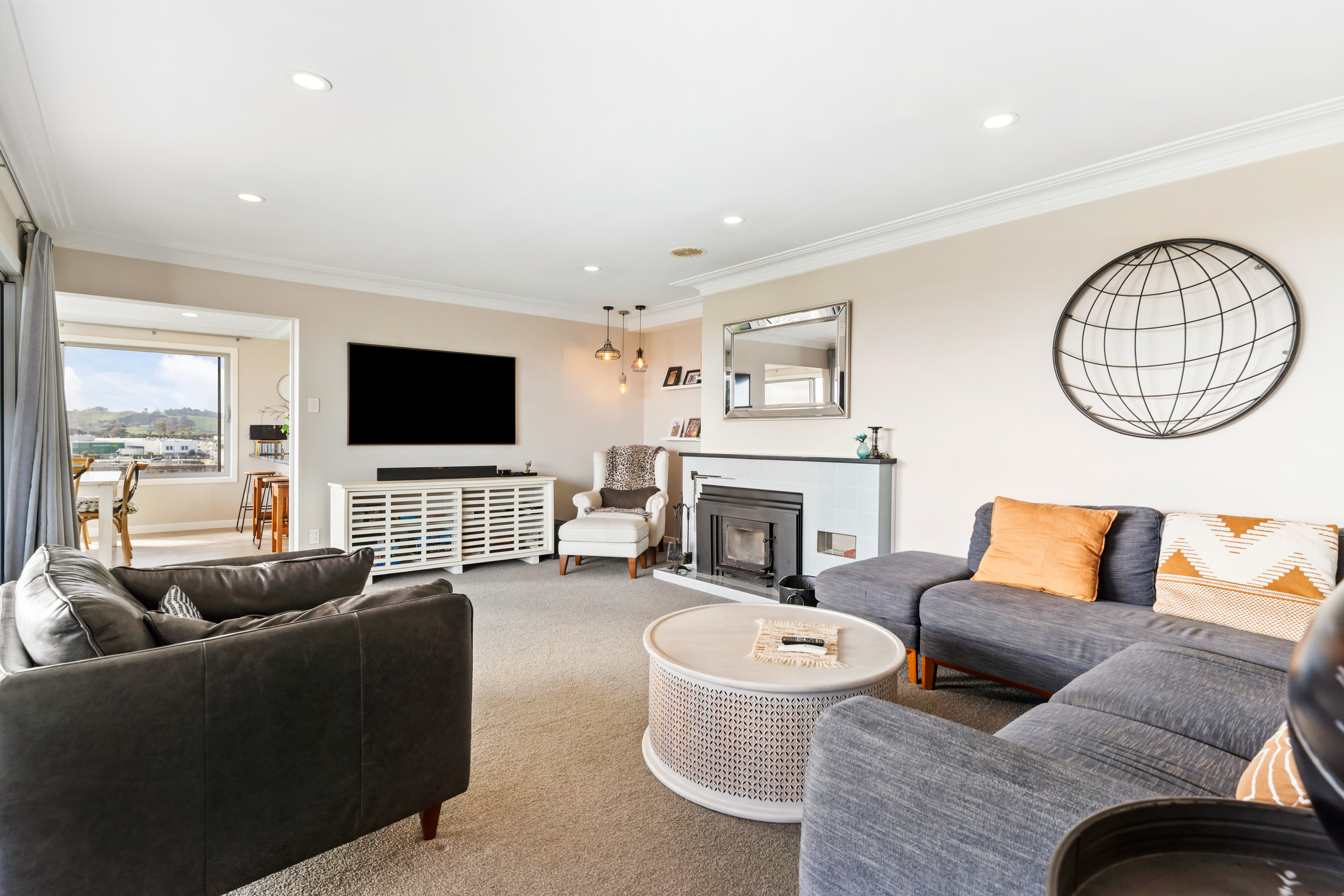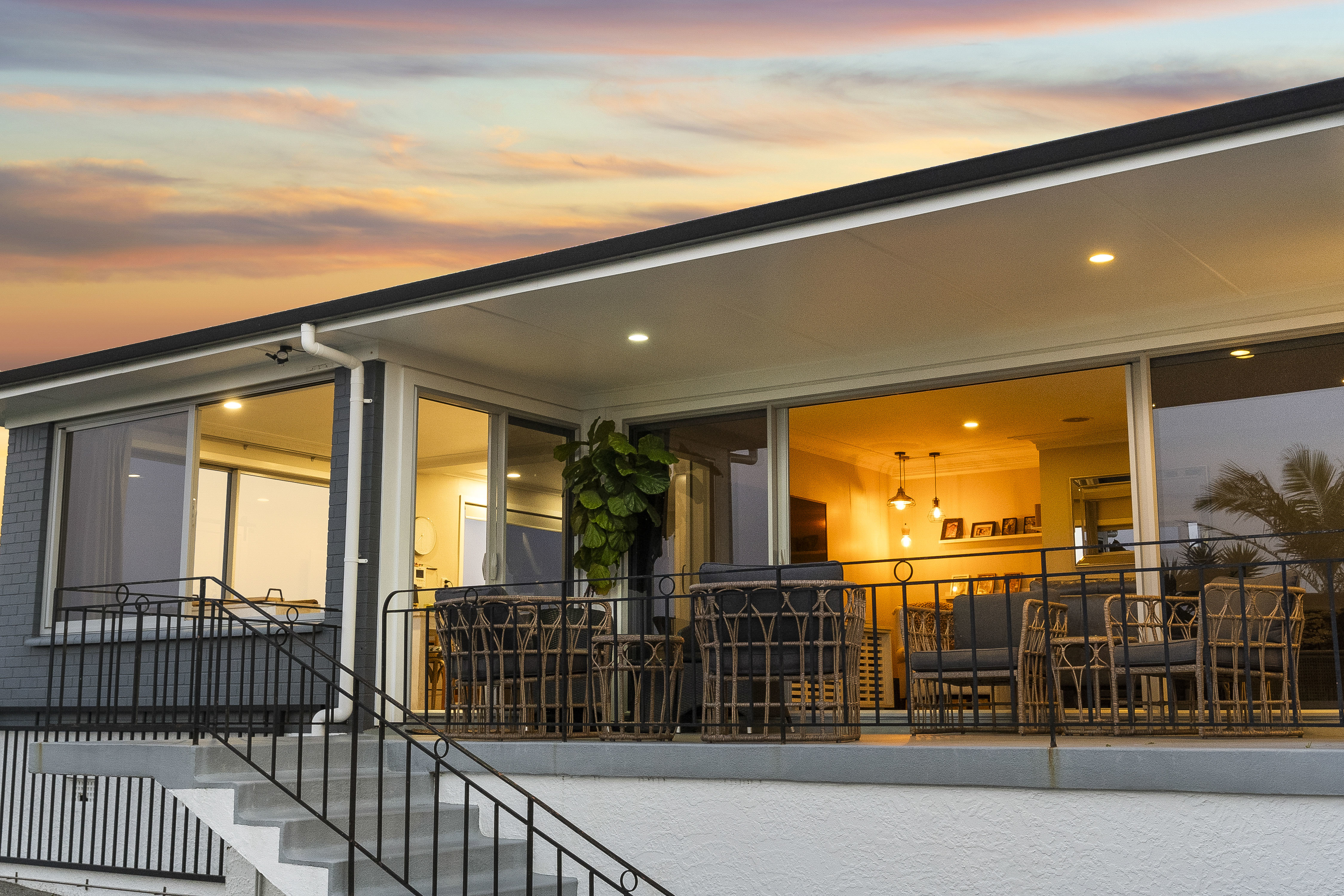 The home itself is practical and well considered. A double internal-access garage connects easily to the main living spaces, and a generous separate laundry makes everyday routines that little bit simpler. Inside, the layout creates a natural rhythm to the home. The master bedroom sits apart, giving it a quiet retreat-like quality, while the main living and dining areas gather everyone together, framing sea views that catch the light throughout the day. It's easy to imagine weekends here, mornings spent with the sun spilling into the kitchen, afternoons outside on the lawn while the kids or grandchildren play, and evenings watching the changing colours of the water from the comfort of your living room.