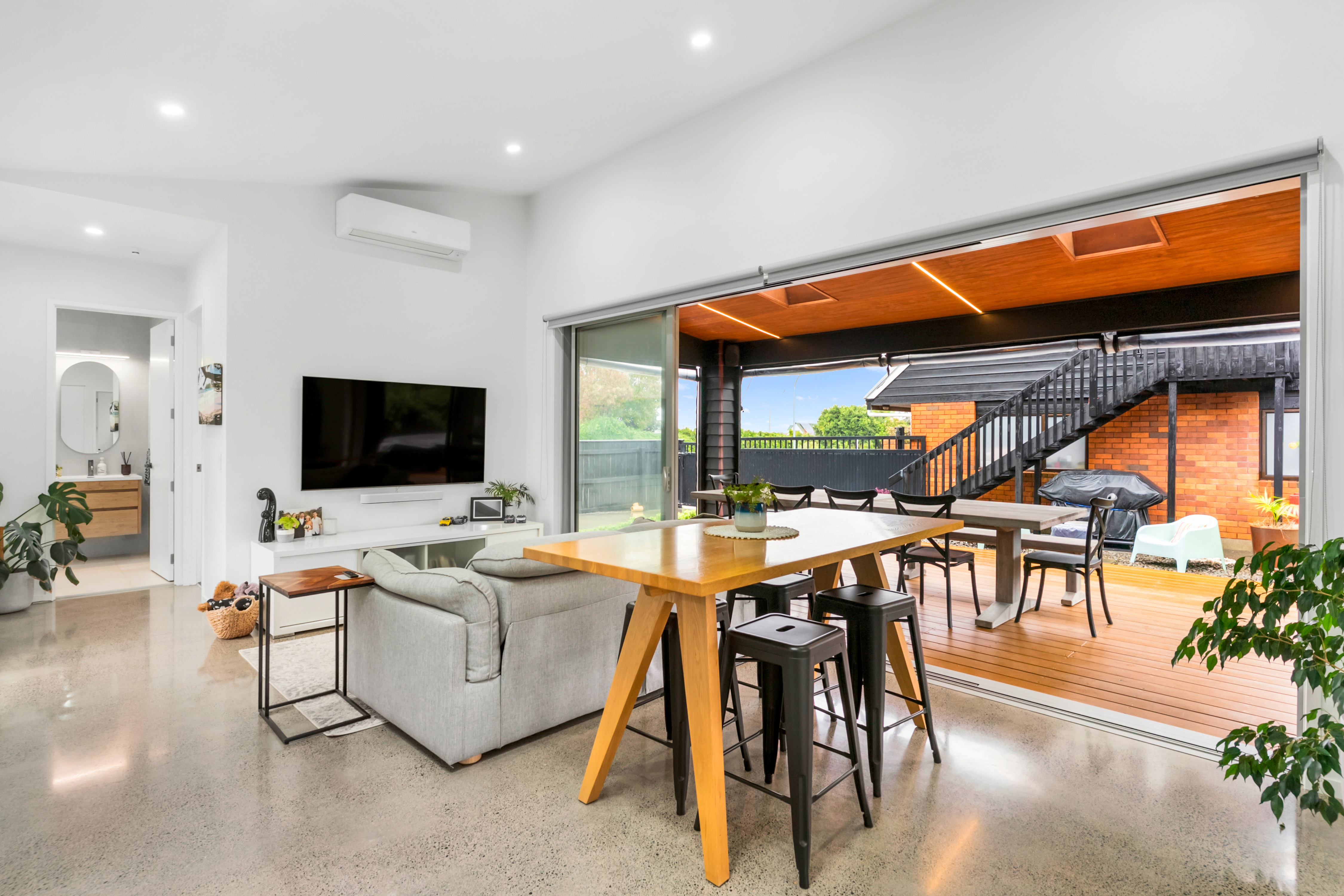 Set apart, the minor dwelling introduces a different tone entirely. Modern, high-spec, and self-contained, it offers two bedrooms and two bathrooms, with its own covered outdoor living and gated parking. Private, refined, and complete in its own right, it functions as a home within the property, ideal for extended family or a possible premium rental.