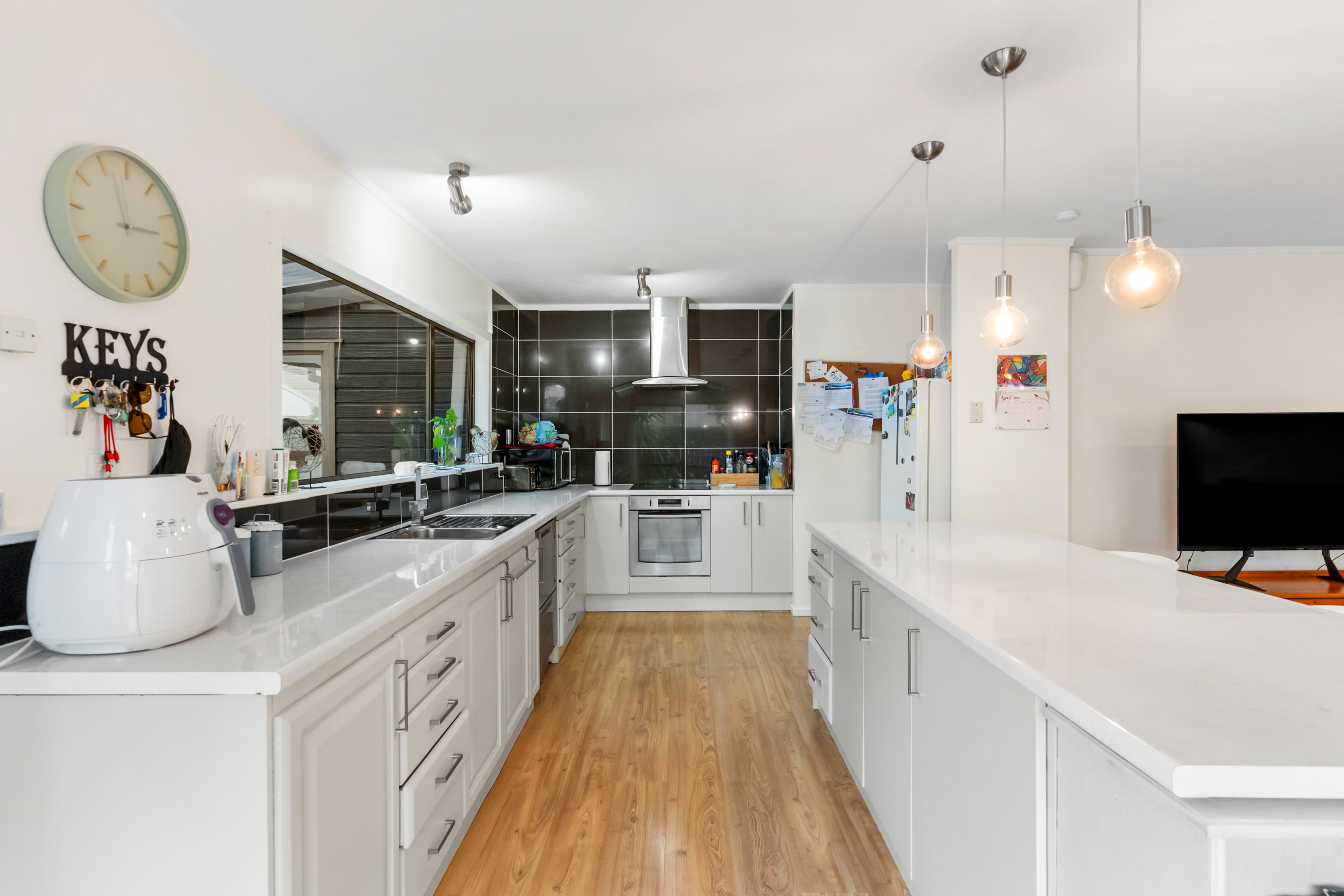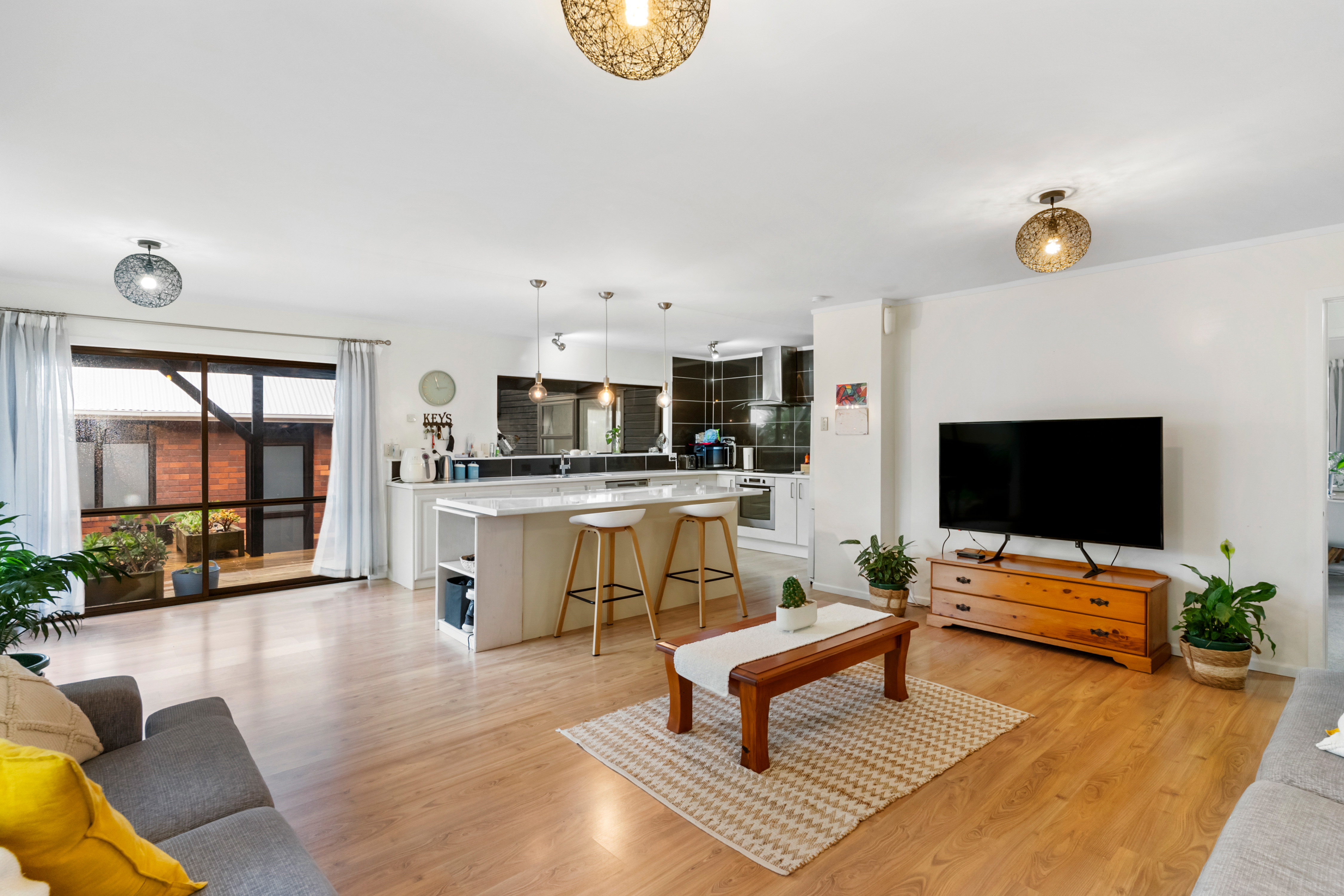 At its centre, the original 1980s home remains grounded and familiar. Four bedrooms and two bathrooms are arranged with ease, while open-plan living flows outward to a fenced backyard. It is a home that feels settled, functional, and ready for everyday life, with space for children to move and for families to gather.