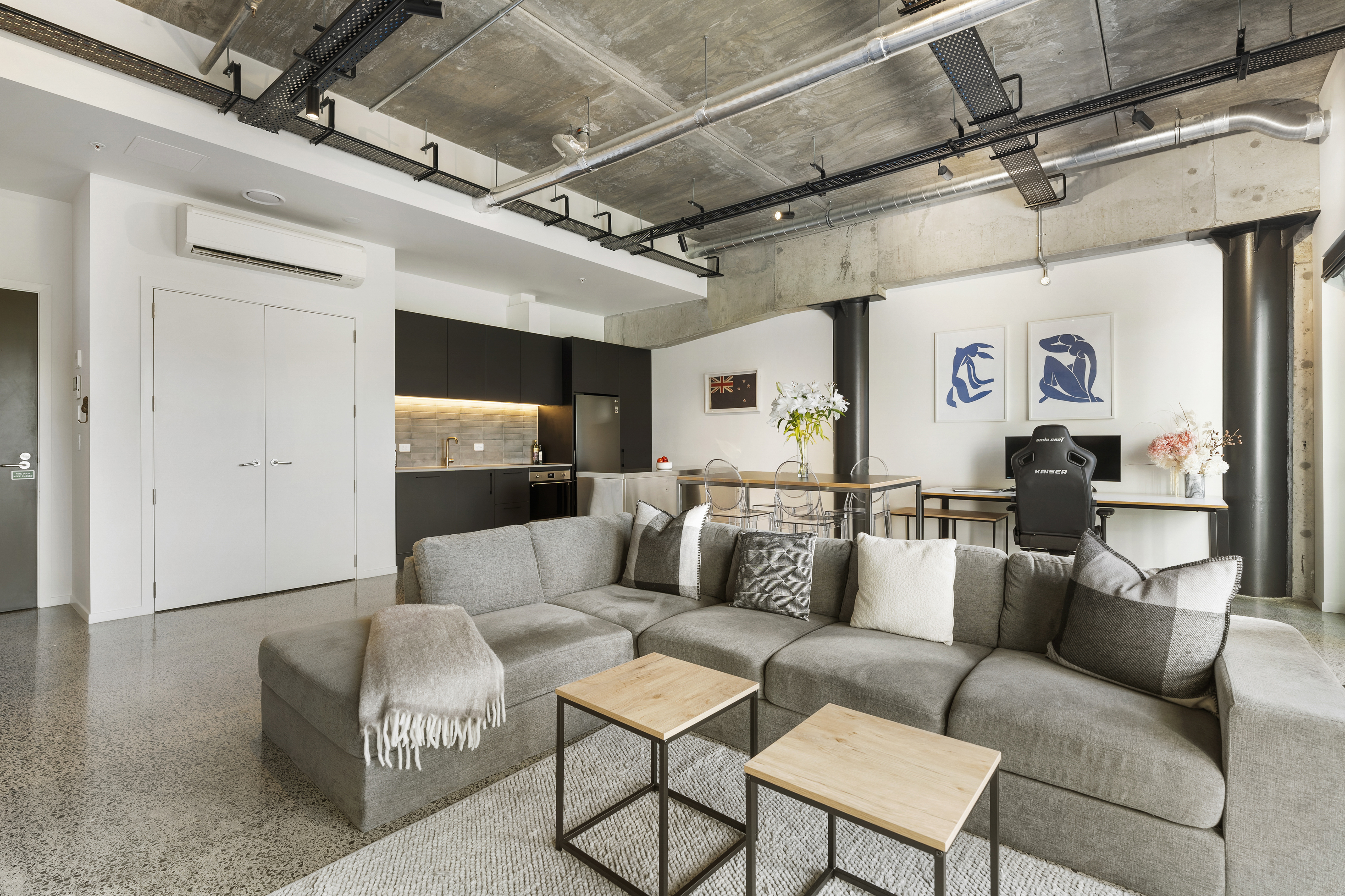 Welcome to '59 France,' a multi-award-winning development by Urban Collective and one of Auckland's most prestigious addresses. This newly completed warehouse apartment is a masterpiece of sophisticated design, blending luxurious 3.5m stud heights with a timeless industrial aesthetic. Here, soaring ceilings, exposed beams, and polished concrete floors combine to create a truly spectacular living space.
