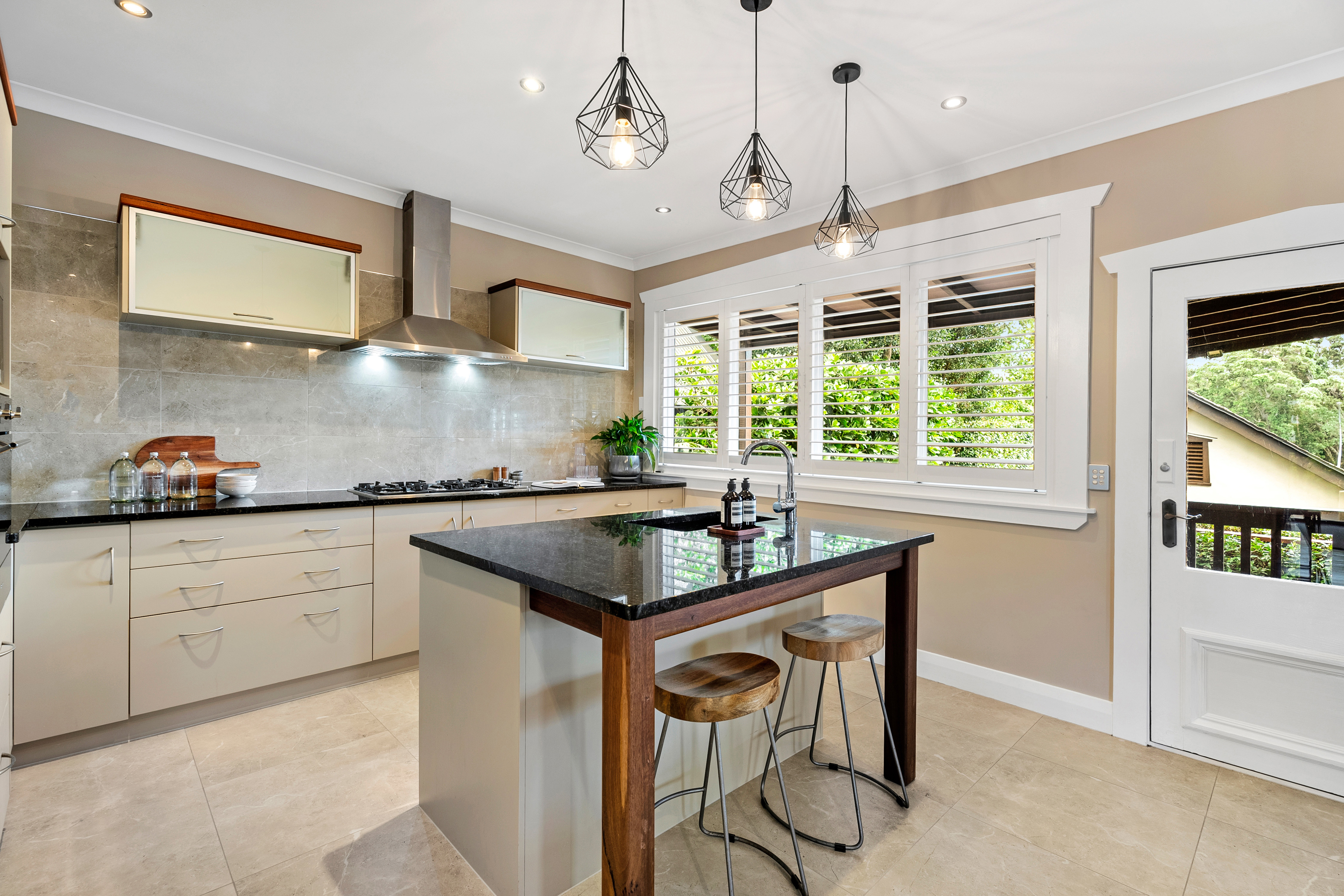 Inside, the heart of the home unfolds as a seamless open-plan living, dining, and kitchen. A statement schist fireplace anchors the space, creating warmth and character, while the well-appointed kitchen is equally suited to relaxed family dinners or lively entertaining. Large doors open effortlessly to a sun-drenched deck and private garden, offering the perfect setting for morning coffee, evening drinks, or weekend gatherings.