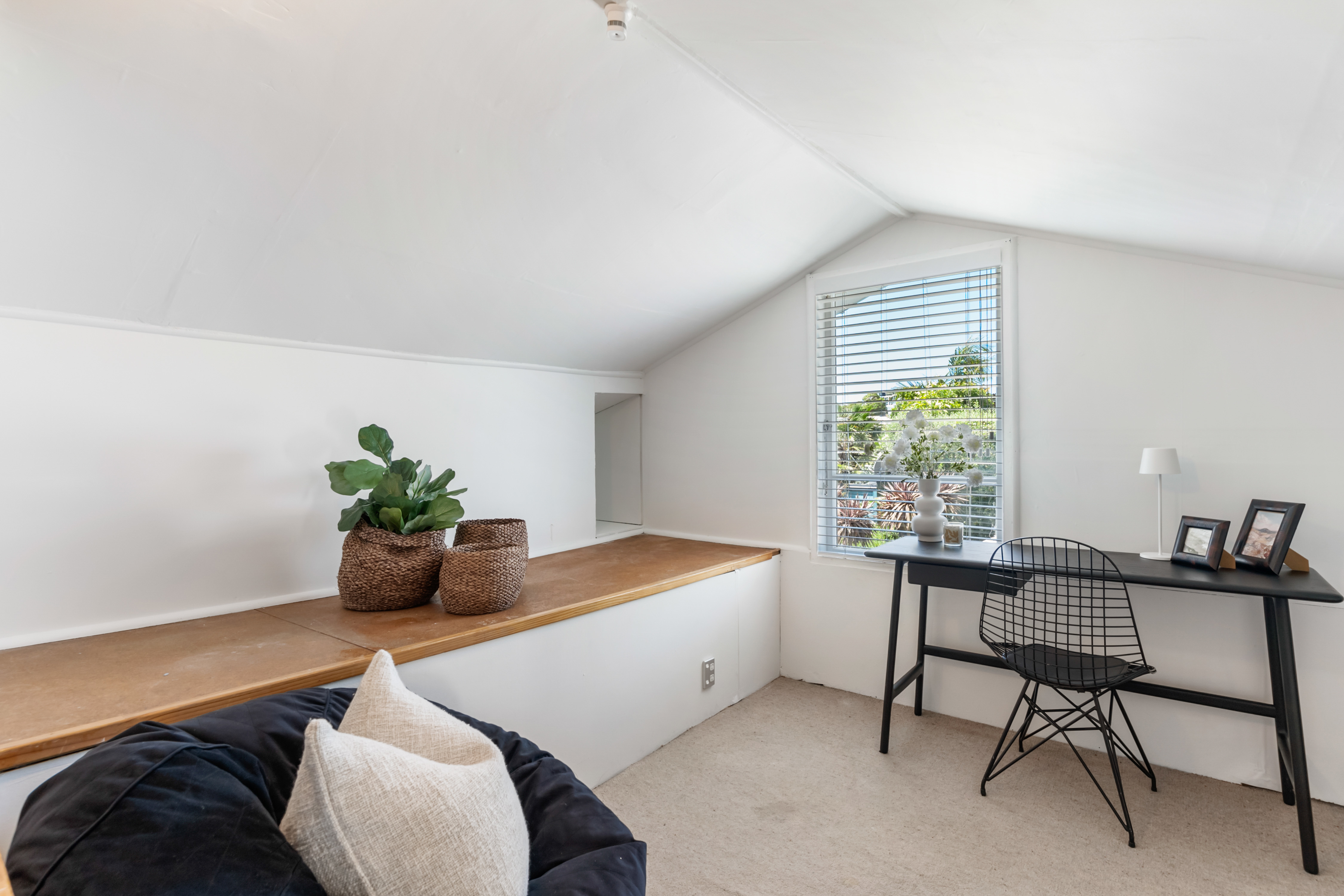 Set below the street (with no off-street parking), this 1920's Bungalow will get you into one of Auckland's most desirable suburbs. The home offers 3 well-proportioned bedrooms, two with built-in wardrobes, an attic office and two bathrooms, (one with a bath) plus a modern kitchen.