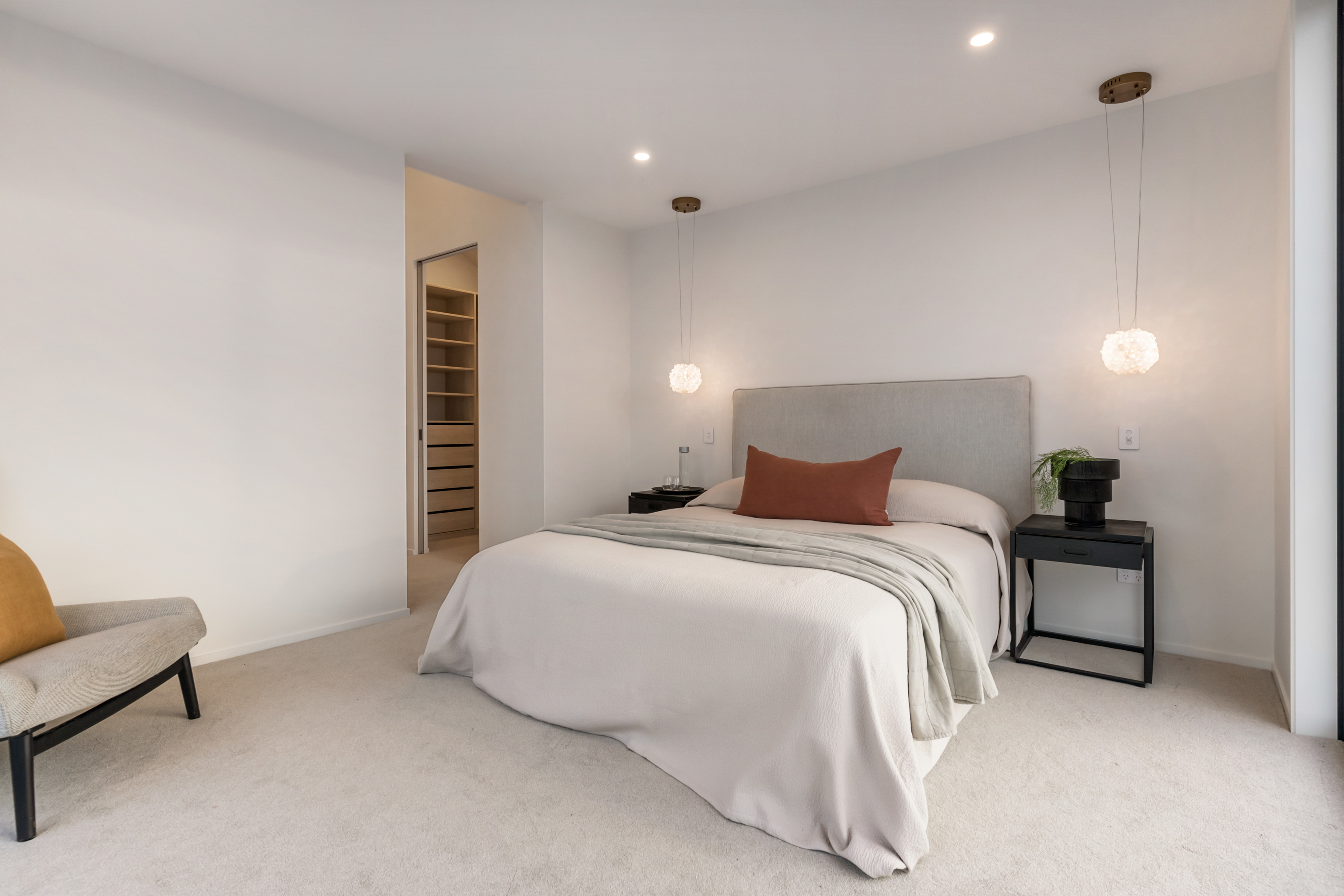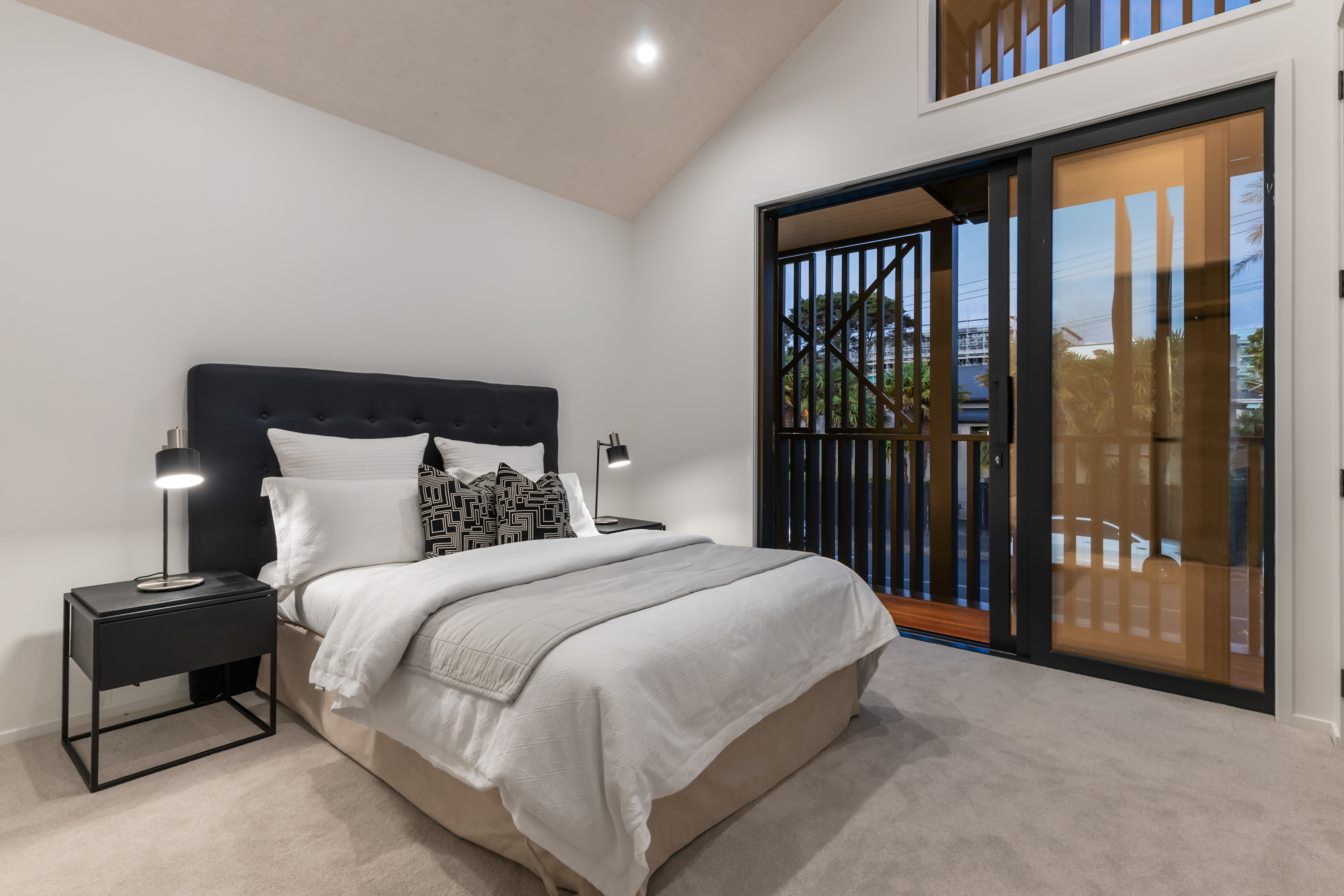 Entry from the street delivers you into a thoughtfully designed space with wine storage, garage access, and powder room. Upstairs, four generous bedrooms offer retreat and flexibility. The main bedroom captures stunning Waitākere views with glimpses of the upper harbour, complemented by a fully tiled ensuite and walk-in robe. Three additional bedrooms accessed from the central landing provide ample space, with privacy maintained through timber shutters. Impressive ceiling heights throughout create an airy sense of volume. Practical luxury includes a secure garage, internal laundry, and additional off-street parking-genuine rarities for this inner-city location.