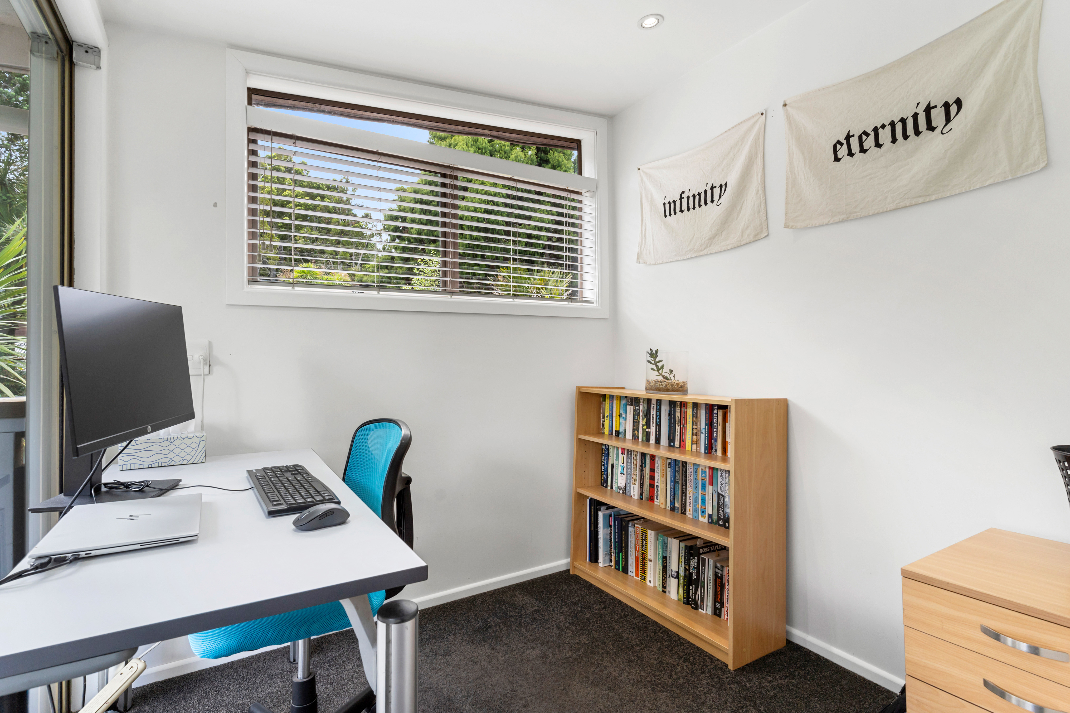 The private upper level is a master retreat, with a spacious master bedroom, walk in robe, ensuite, and a perfect work from home space overlooking the backyard and beyond.