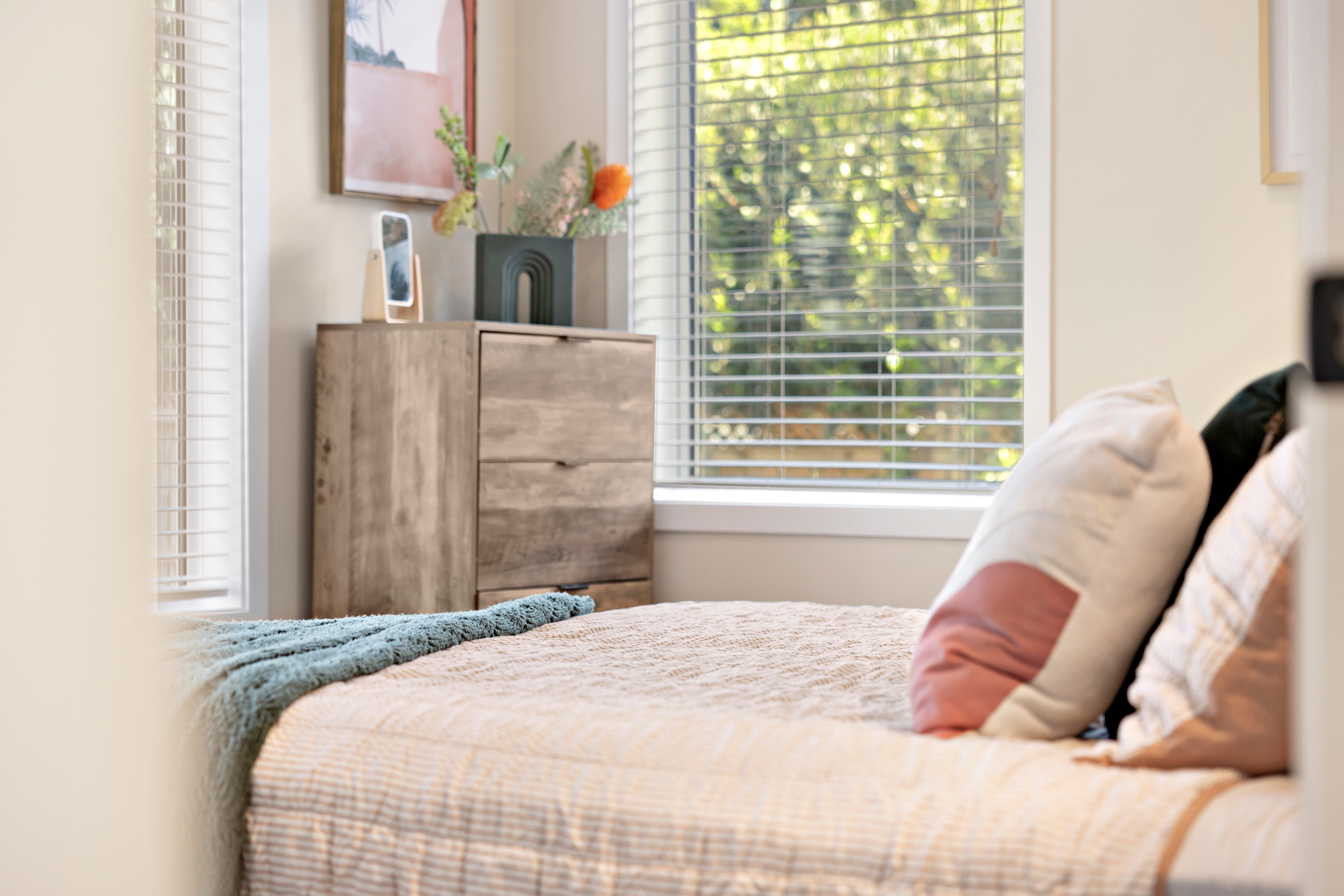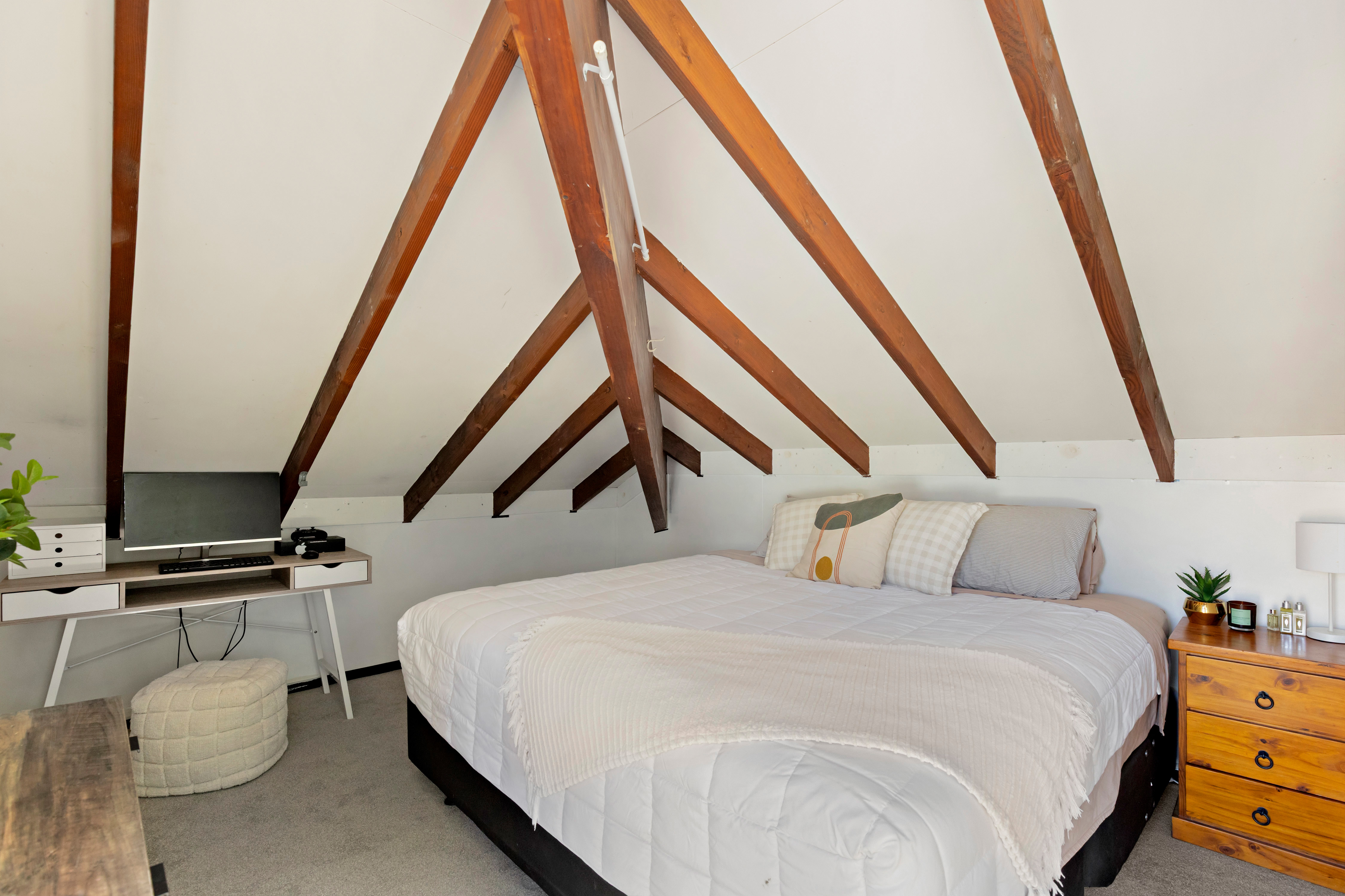 Three bedrooms are arranged with purpose, offering privacy and adaptability as family life evolves. Beyond the house, a garage with loft space provides more than storage; rather a flexible living space, a studio, workspace, or quiet retreat. The land, just under a quarter acre, is flat, private, and coveted in Original Beachlands. It moves easily from lawn to garden to deck, inviting both everyday living and future possibilities.