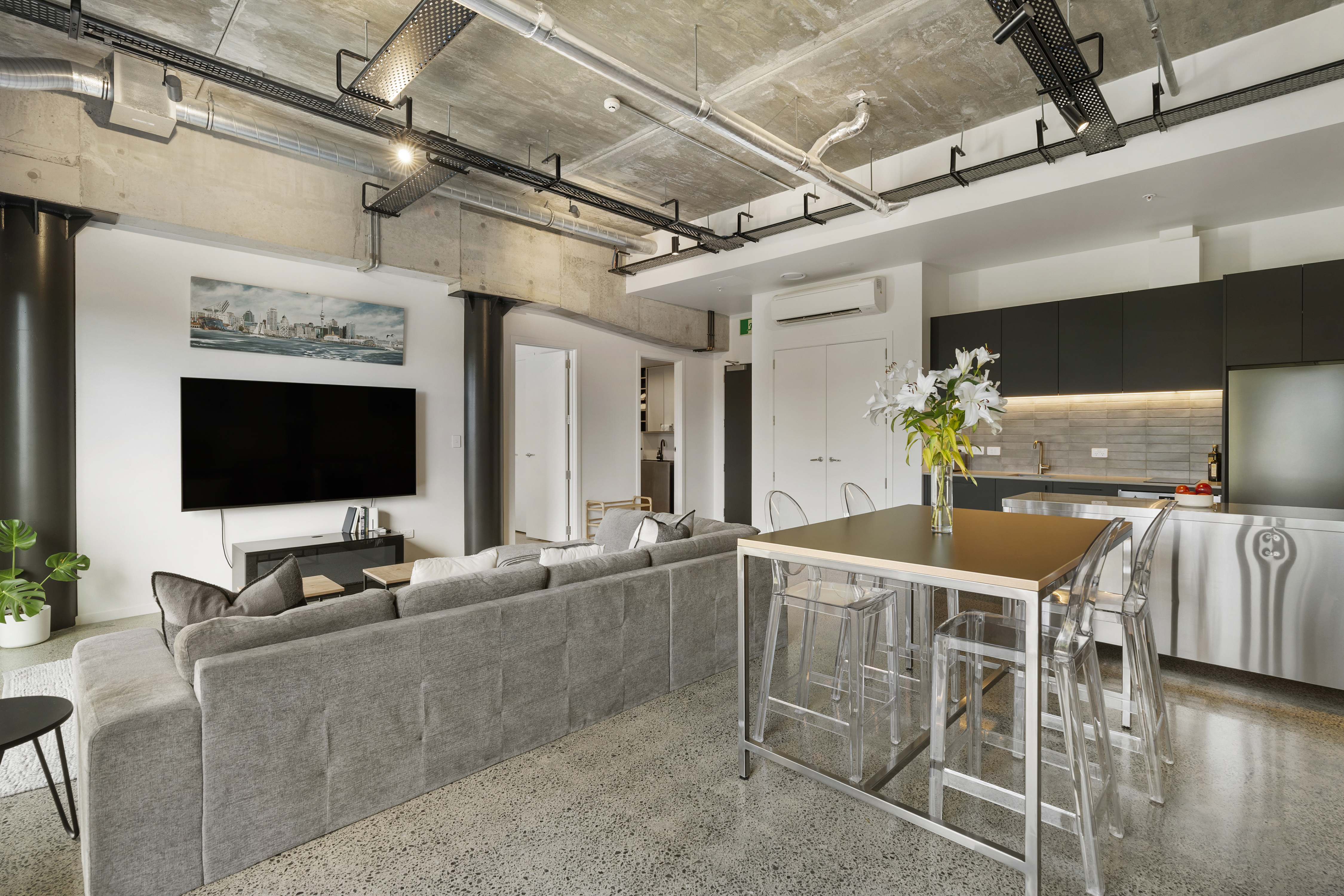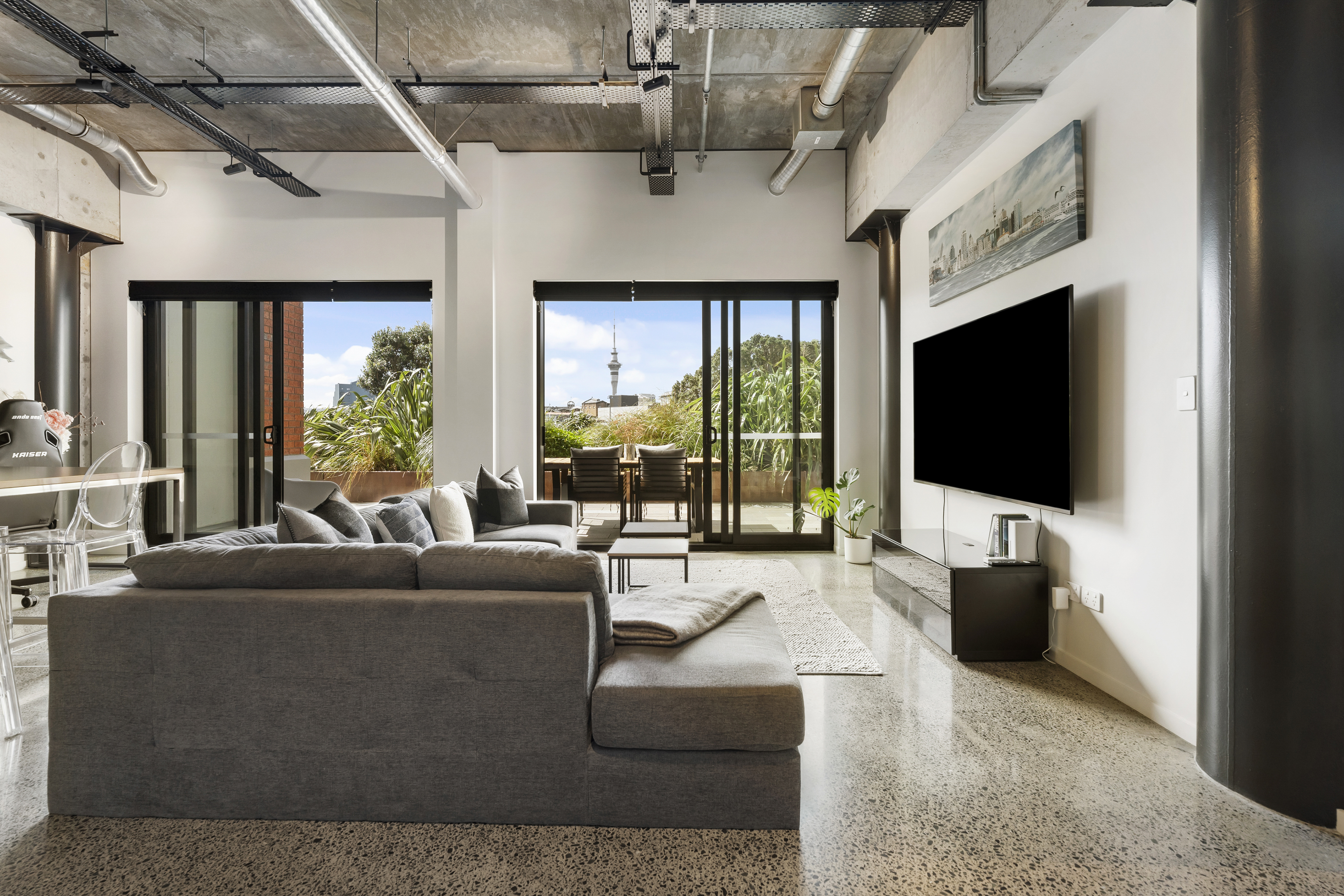 Welcome to '59 France,' a multi-award-winning development by Urban Collective and one of Auckland's most prestigious addresses. This newly completed warehouse apartment is a masterpiece of sophisticated design, blending luxurious 3.5m stud heights with a timeless industrial aesthetic. Here, soaring ceilings, exposed beams, and polished concrete floors combine to create a truly spectacular living space.