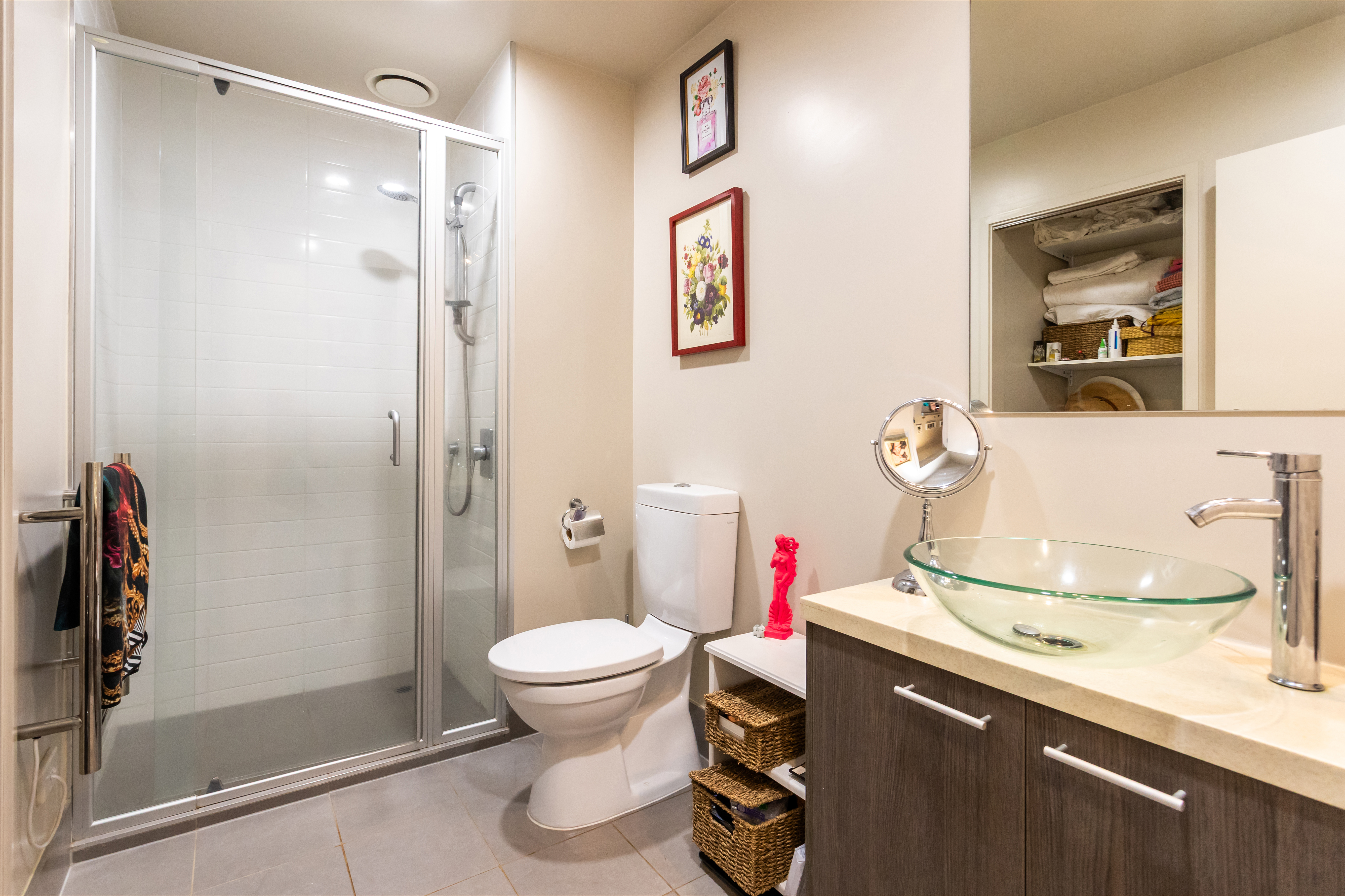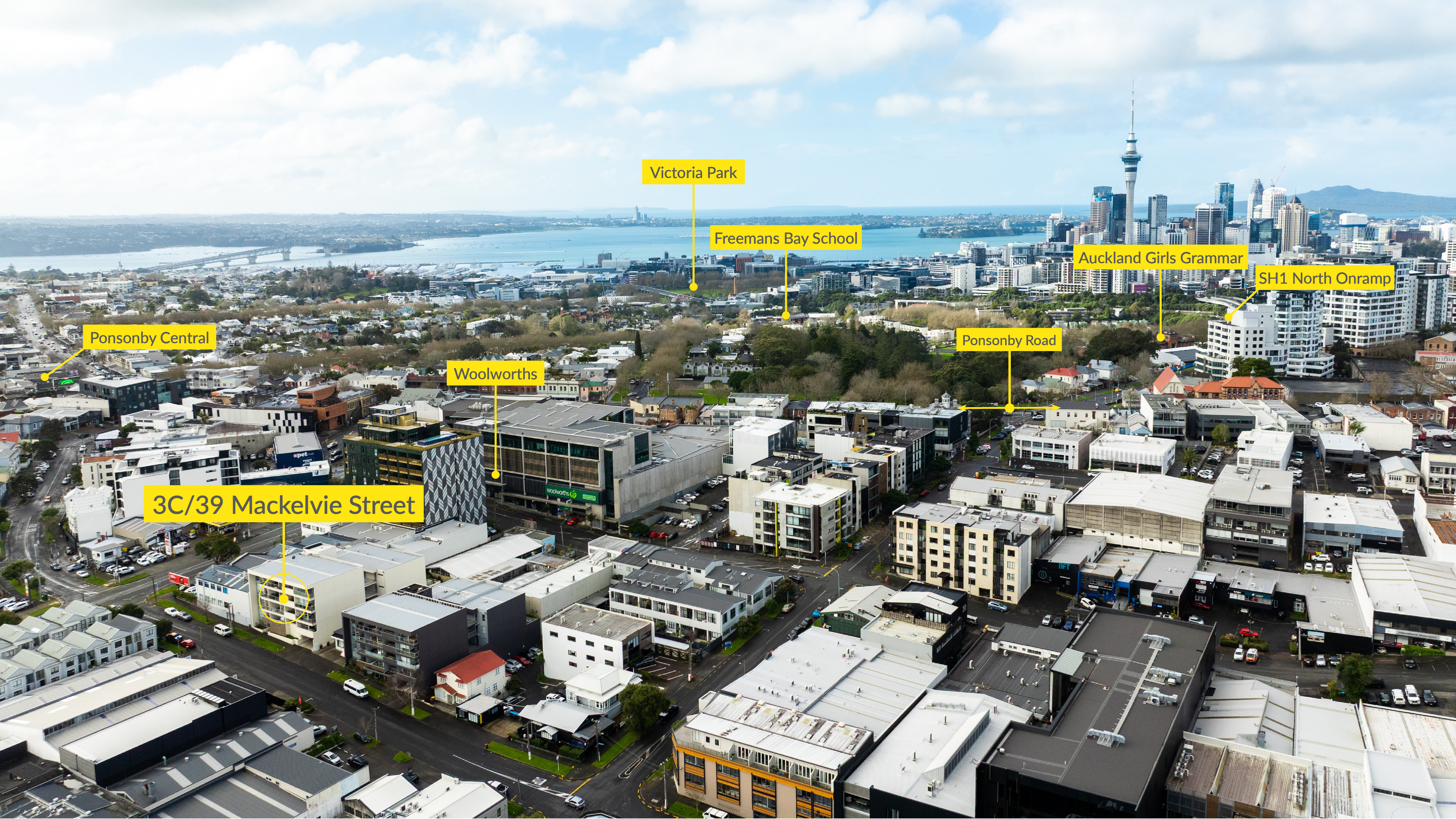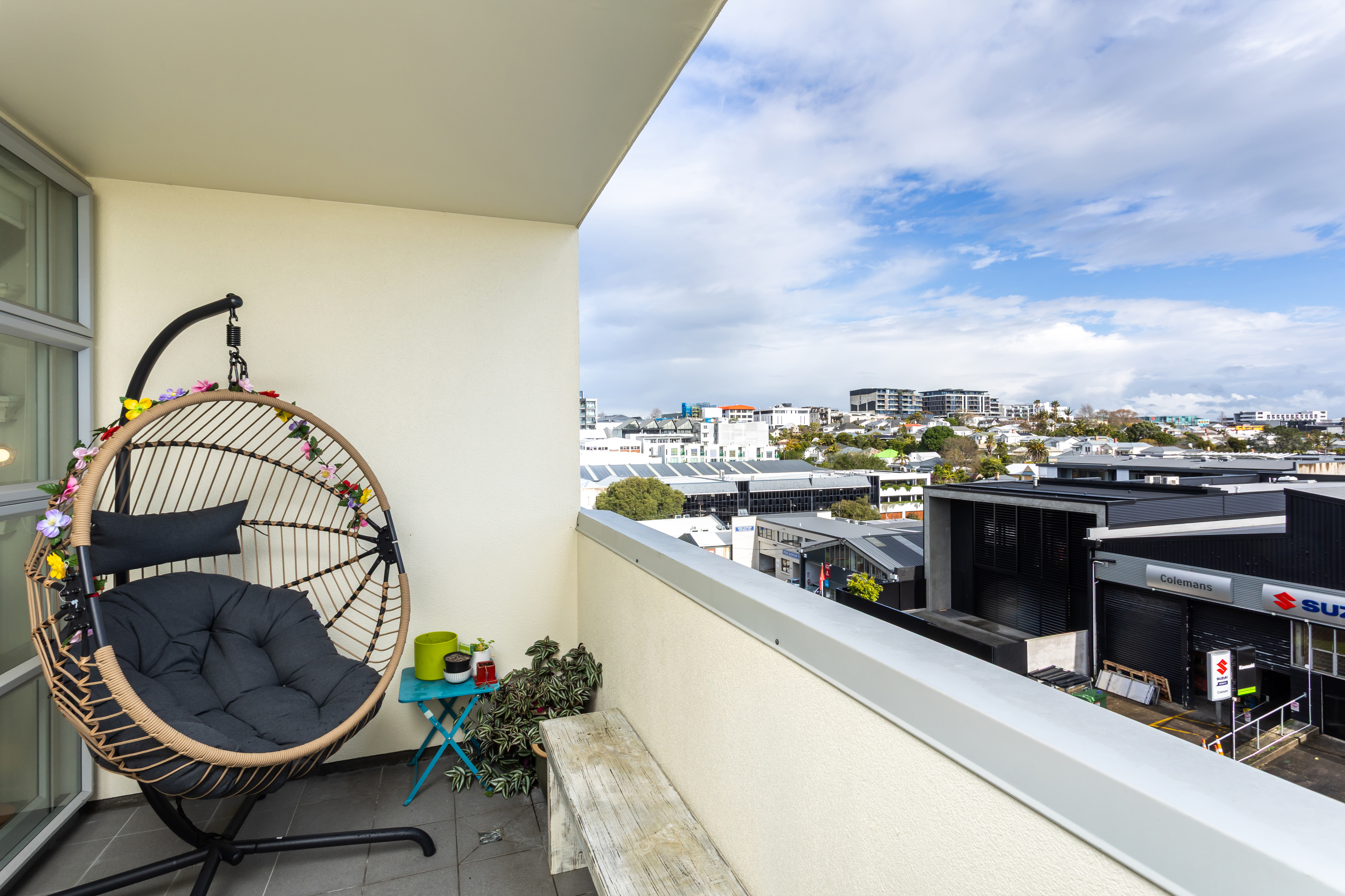 The layout features a modern kitchen and an open-plan dining and living area that extends to a covered private balcony. From the balcony, you can enjoy stunning sunsets over Ponsonby, Grey Lynn, and the distant Waitakere Ranges.