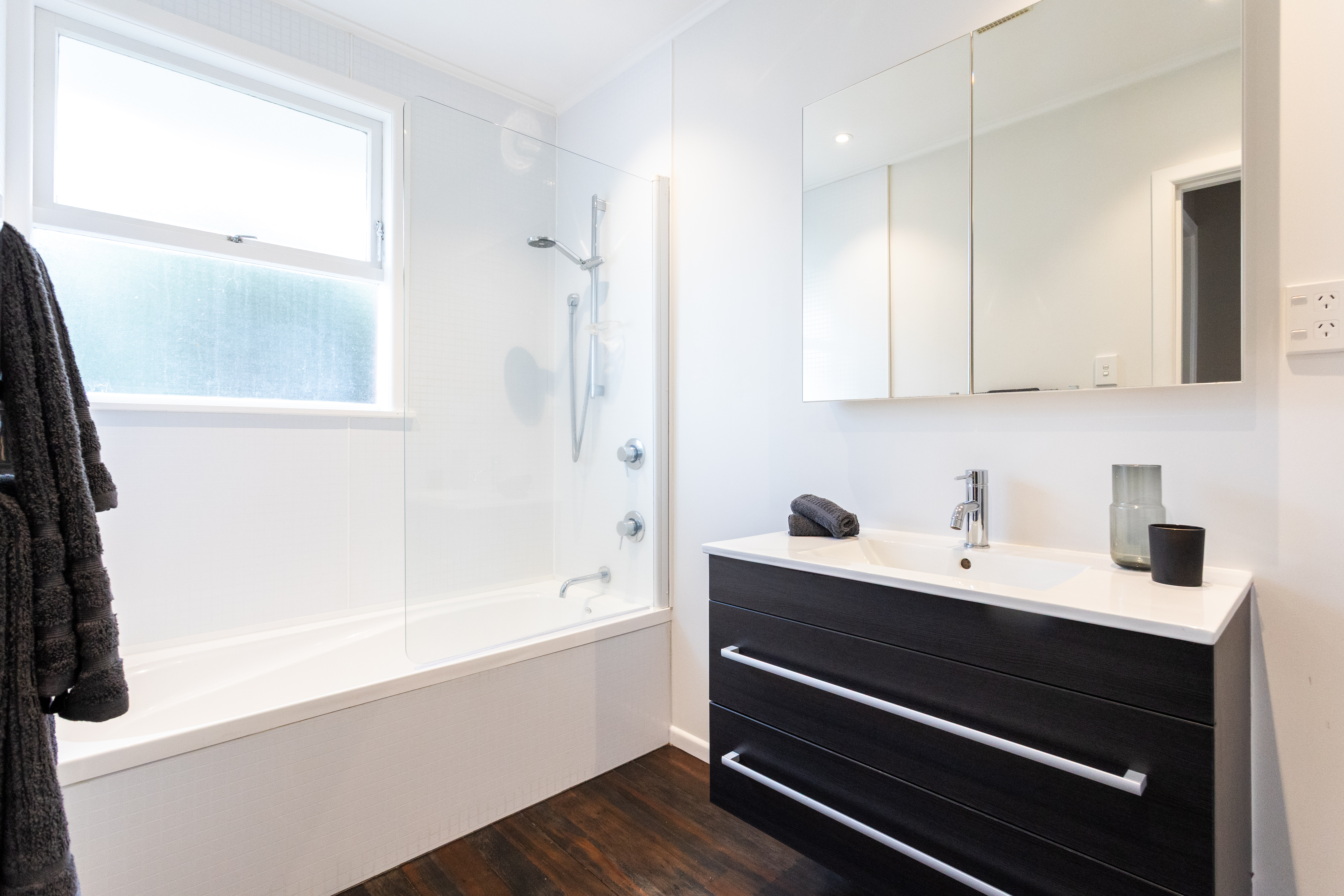 Tucked off the main living area is a modern kitchen and a separate laundry which opens to a covered back porch and garden.