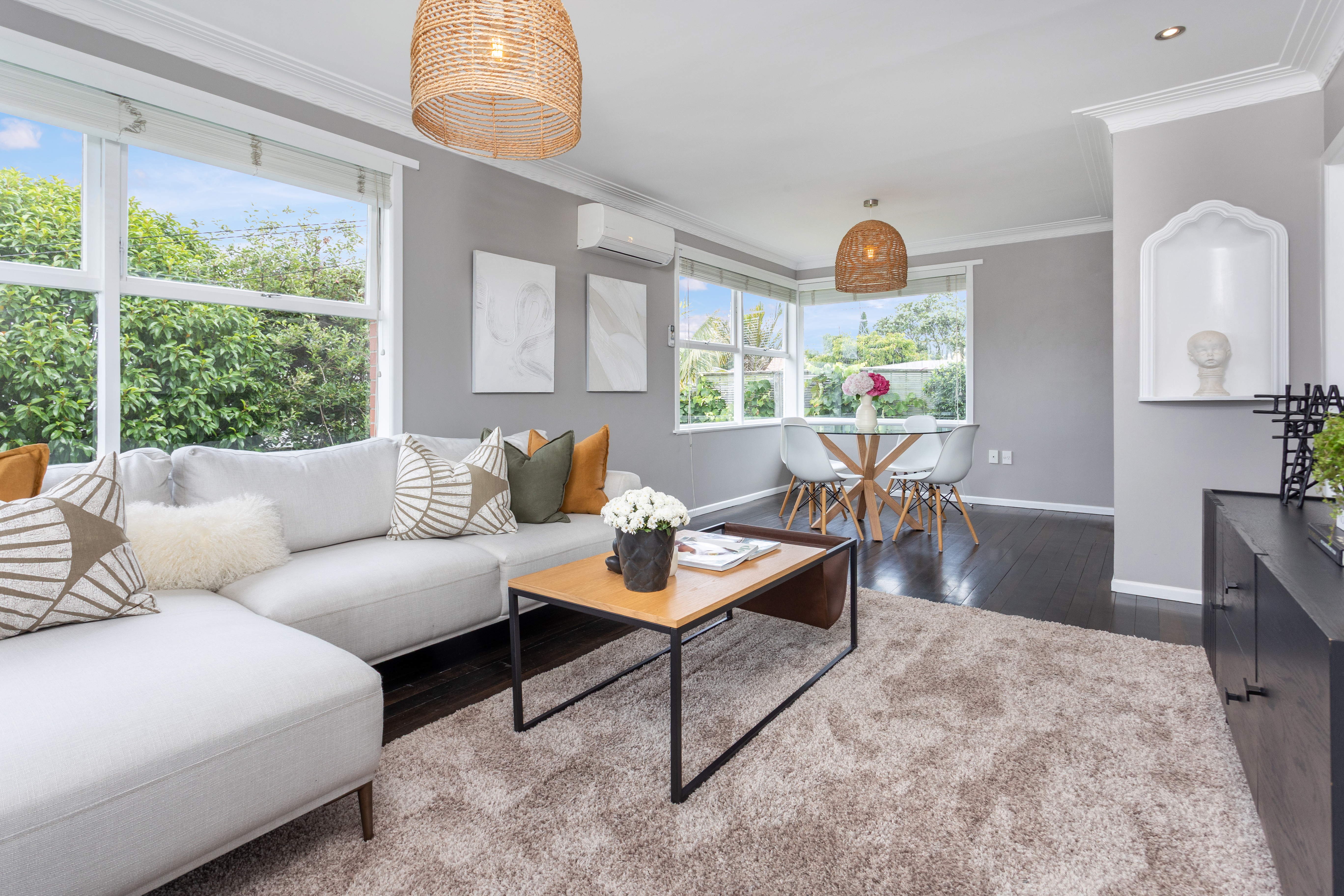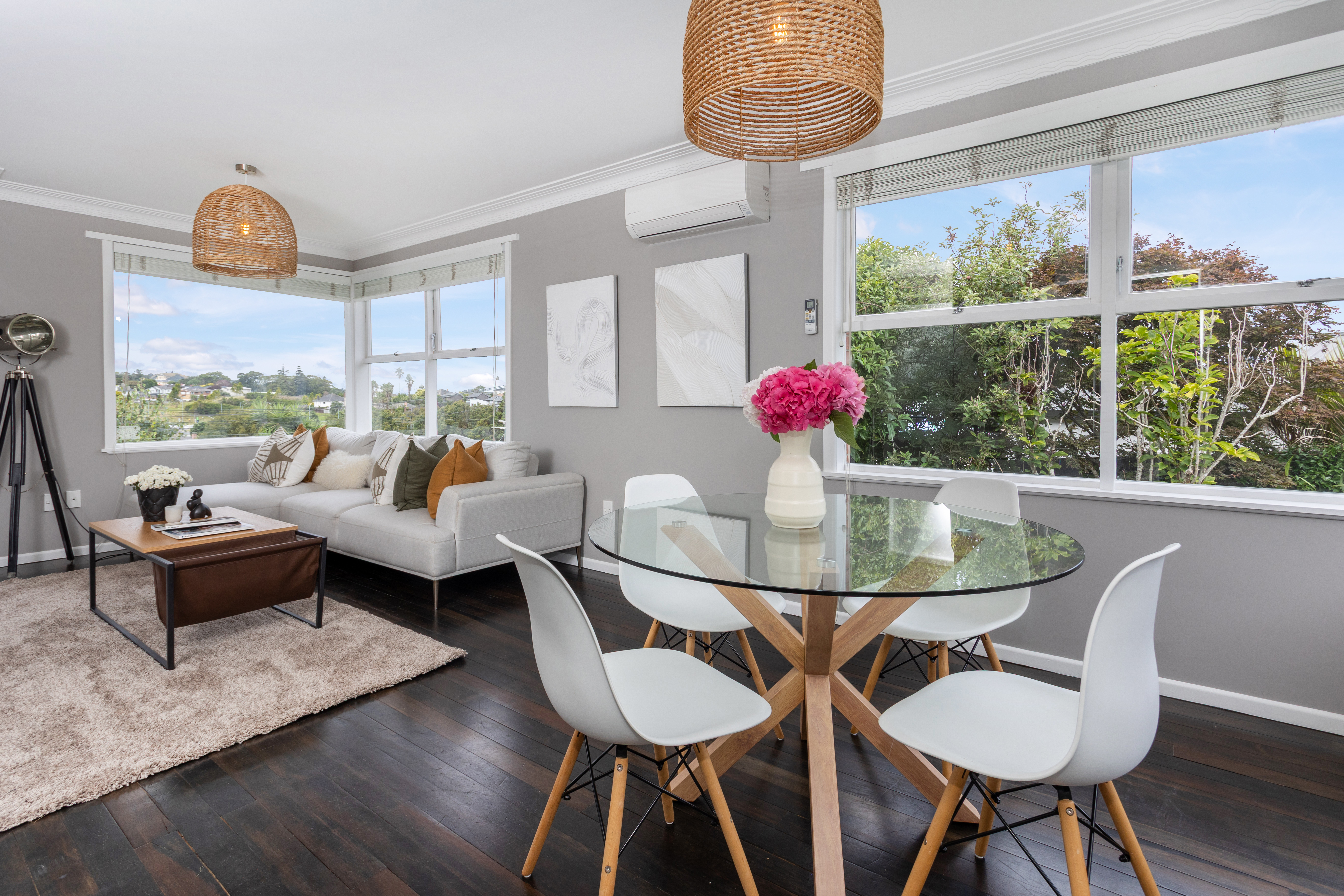 The home features open-plan living and dining with immaculate timber floors and flooded with natural light from the huge windows.
