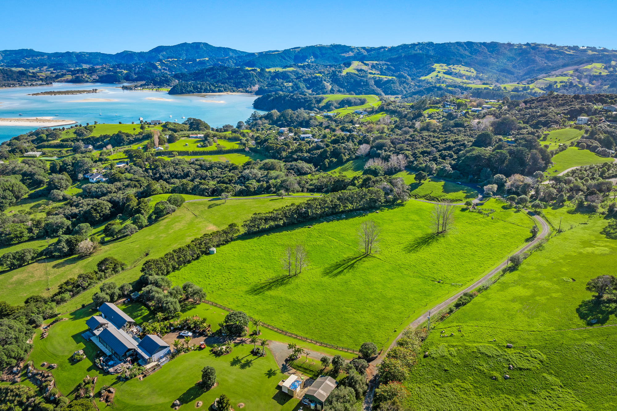 Set among exclusive, architecturally designed homes including Christian Anderson, Ken Crosson, and Pip Cheshire, this elevated site captures breathtaking panoramic views across Omaha Bay, Whangateau Harbour, and Little Barrier in the sparkling Pacific Ocean and beyond.