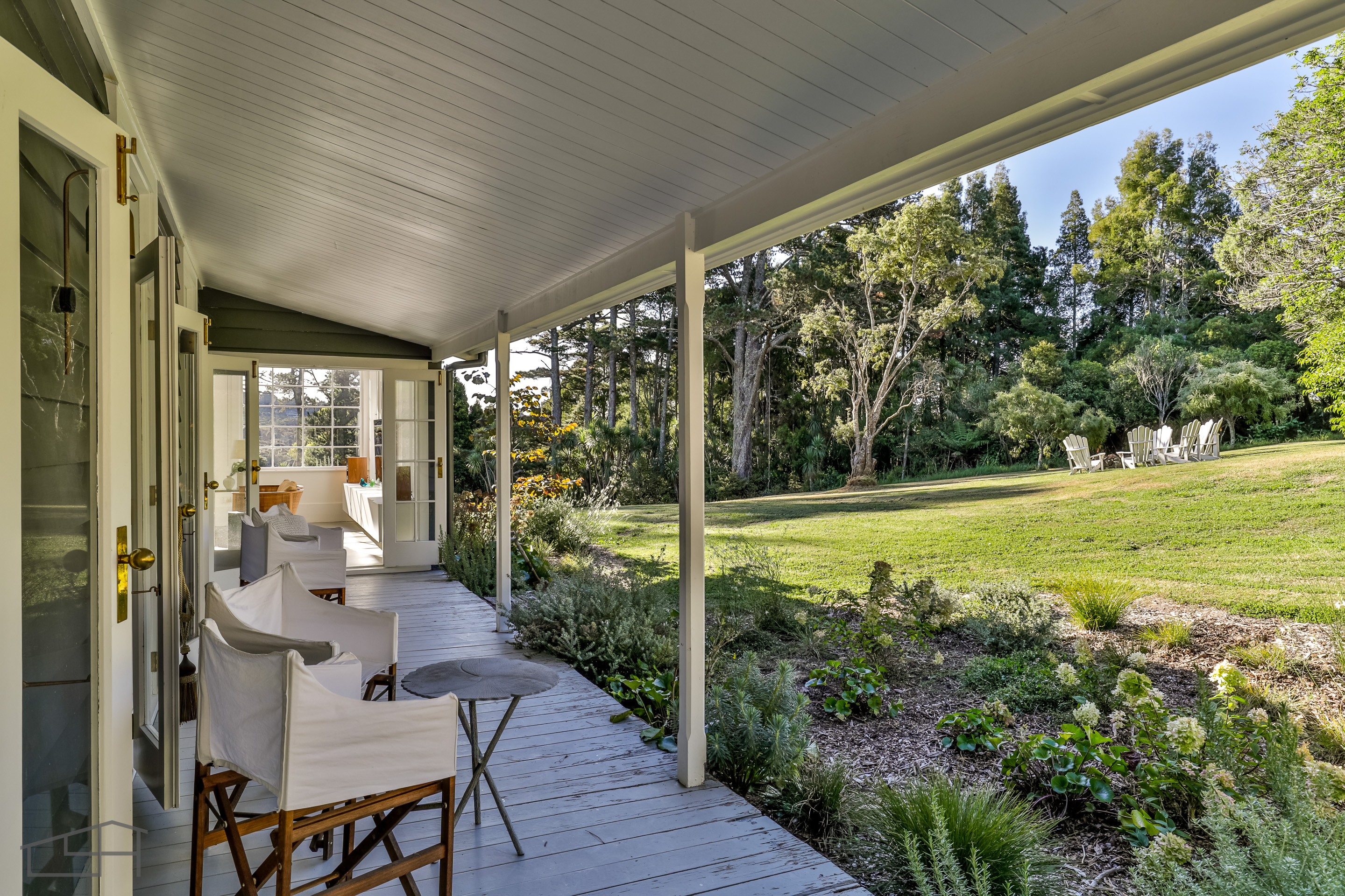 The main residence exudes quiet grandeur with classic proportions, wide verandas, and beautifully balanced symmetry. Four spacious bedrooms, sunlit living spaces, and a bespoke galley kitchen with handcrafted cabinetry create a home designed for both everyday comfort and elegant entertaining. Natural light pours through French doors and multi-pane windows, connecting the interiors to the surrounding landscape.