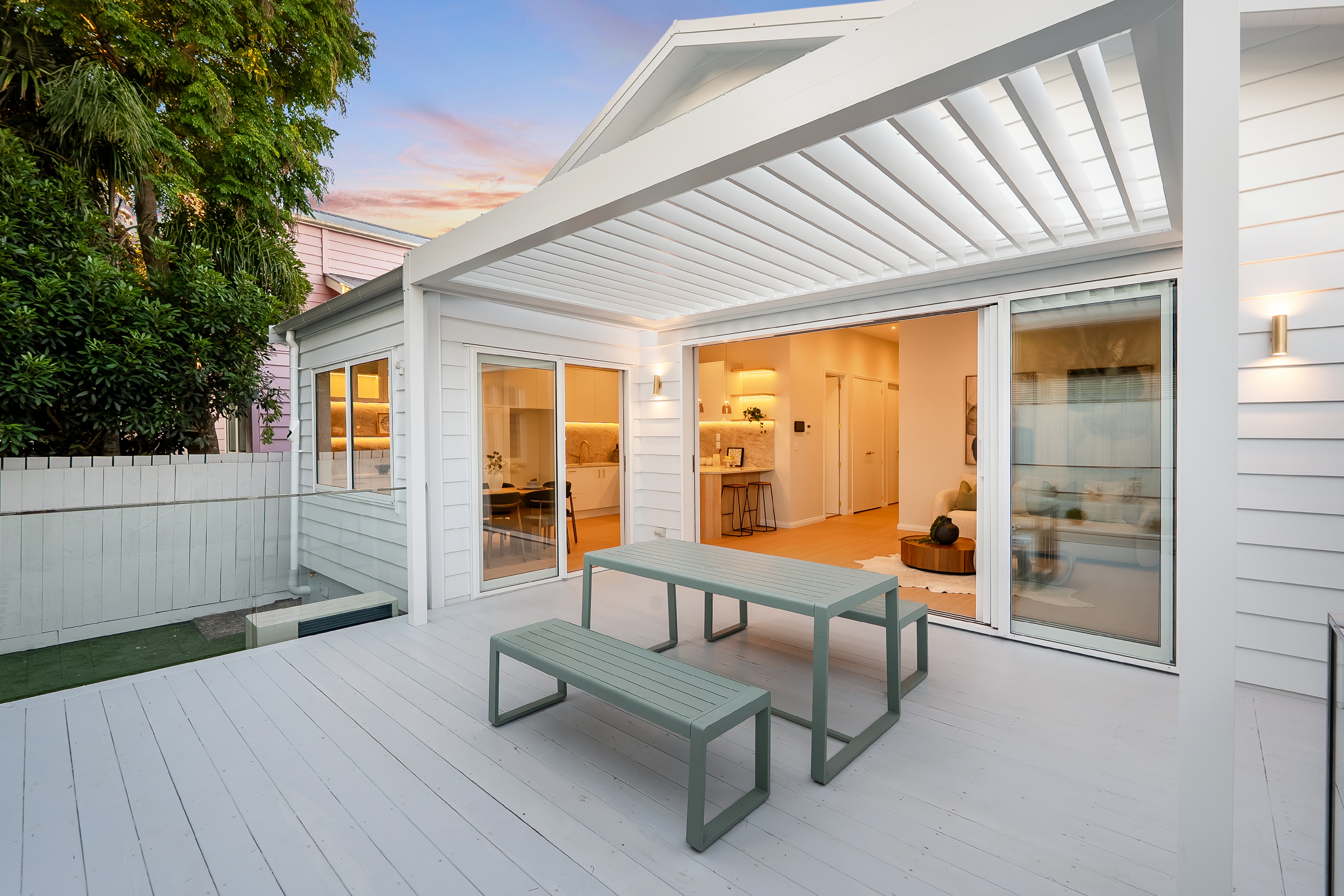 • Gorgeous street presence with traditional picket fence • Three-bedroom layout, including a master with an ensuite and French doors opening to the front veranda • Centrally located, fully tiled family bathroom with freestanding bath set within a walk-in shower • High ceilings and generous wall space enhance the sense of light and scale throughout • Well-appointed kitchen featuring Bosch appliances, excellent storage, and an open-plan dining area with a dedicated drinks and coffee area • Living and dining areas connect via stacking sliders to a spacious louvre-covered entertaining deck and private garden • Central heating and cooling, plus exceptional storage solutions throughout • Exterior and interior walls are insulated, along with double glazing throughout a large part of the home • Tidy, low-maintenance garden - a wonderful blank canvas ready for further planting or personalisation - explore putting in a pool, spa, or hot tub • Ponsonby Intermediate is at the end of the street, with Herne Bay Village, Three Lamps, Ponsonby Primary, cafes, bars, and parks all within walking distance.