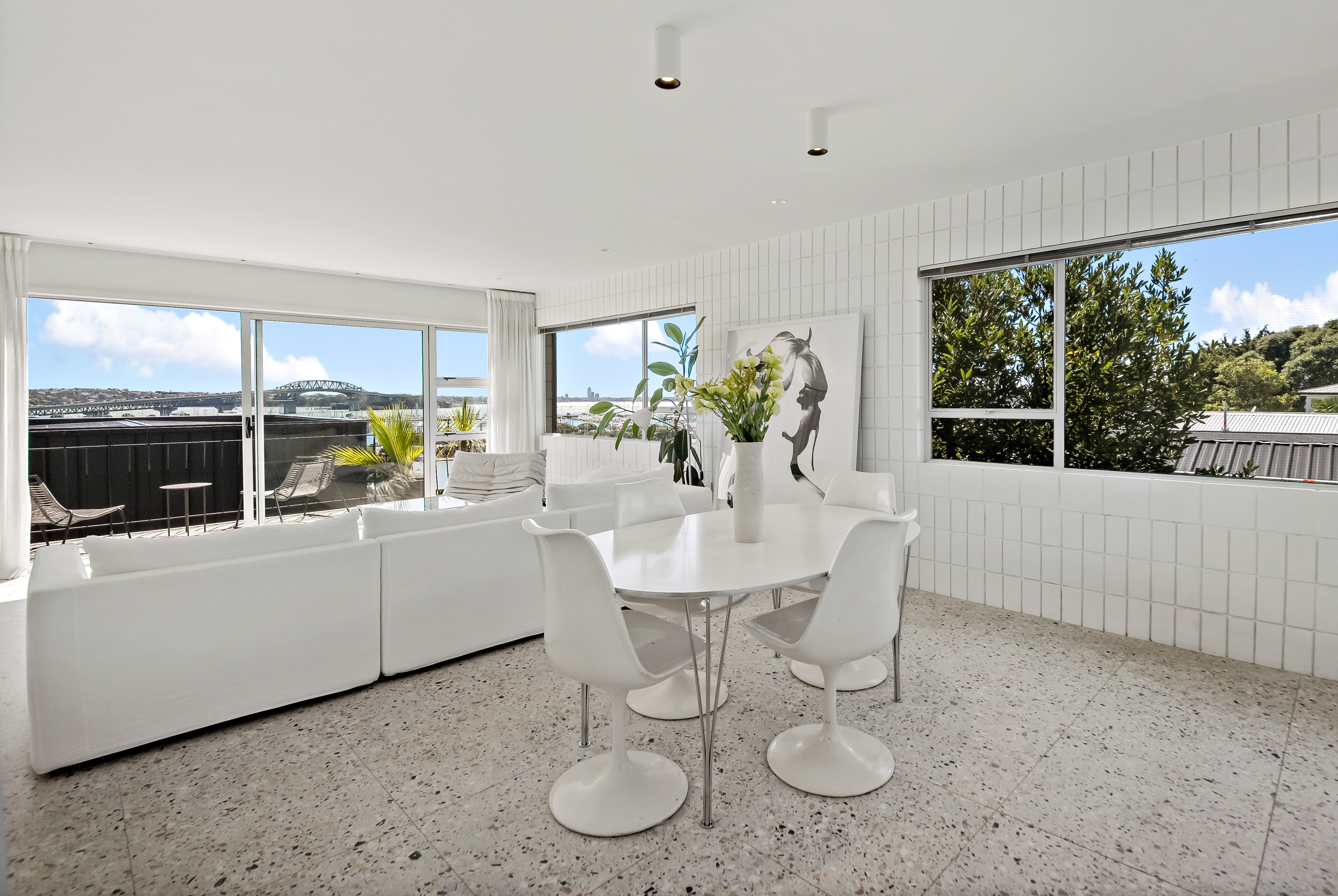 The rare and generous 110sqm (more or less) footprint has been meticulously modernised to complement its world-class setting. Every detail reflects contemporary refinement, from Italian terrazzo tiling and pure wool carpeting to the sleek, integrated IMO designer kitchen equipped with premium Fisher & Paykel appliances. The open-plan living and dining area serves as a bright, sun-filled sanctuary where original 1970s character meets polished modernist style - all framed by the best views in town.
