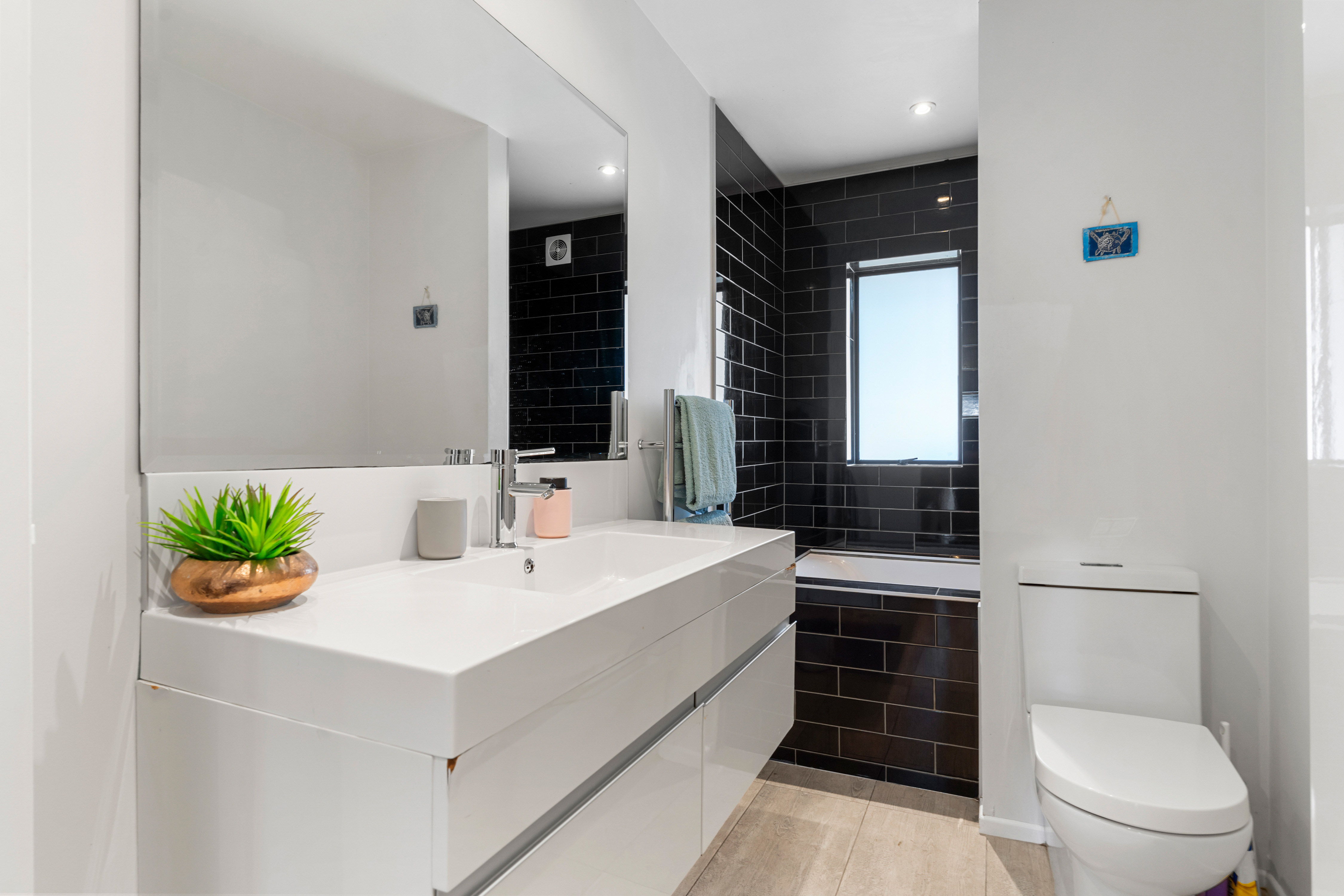 The heart of the home is the light and bright main level, featuring a large, contemporary open-plan living space. A modern kitchen flows seamlessly into the dining and living area, offering year round comfort with a fireplace and gas heating. This space opens to decking at the front and a flat, sun drenched backyard - perfect for children and entertaining. Three bedrooms, a family bathroom, and a tucked away laundry also reside on this level.