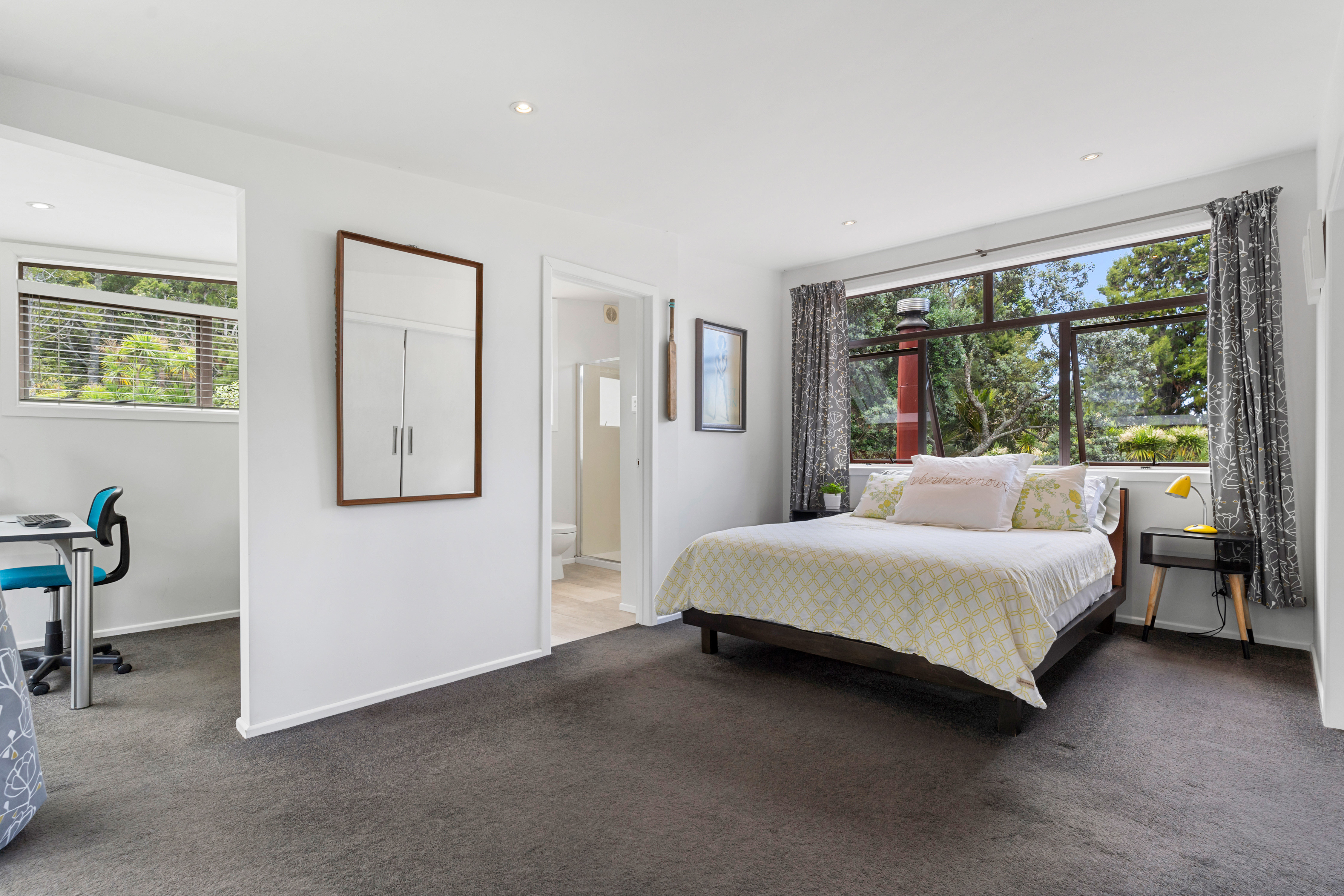 The private upper level is a master retreat, with a spacious master bedroom, walk in robe, ensuite, and a perfect work from home space overlooking the backyard and beyond.