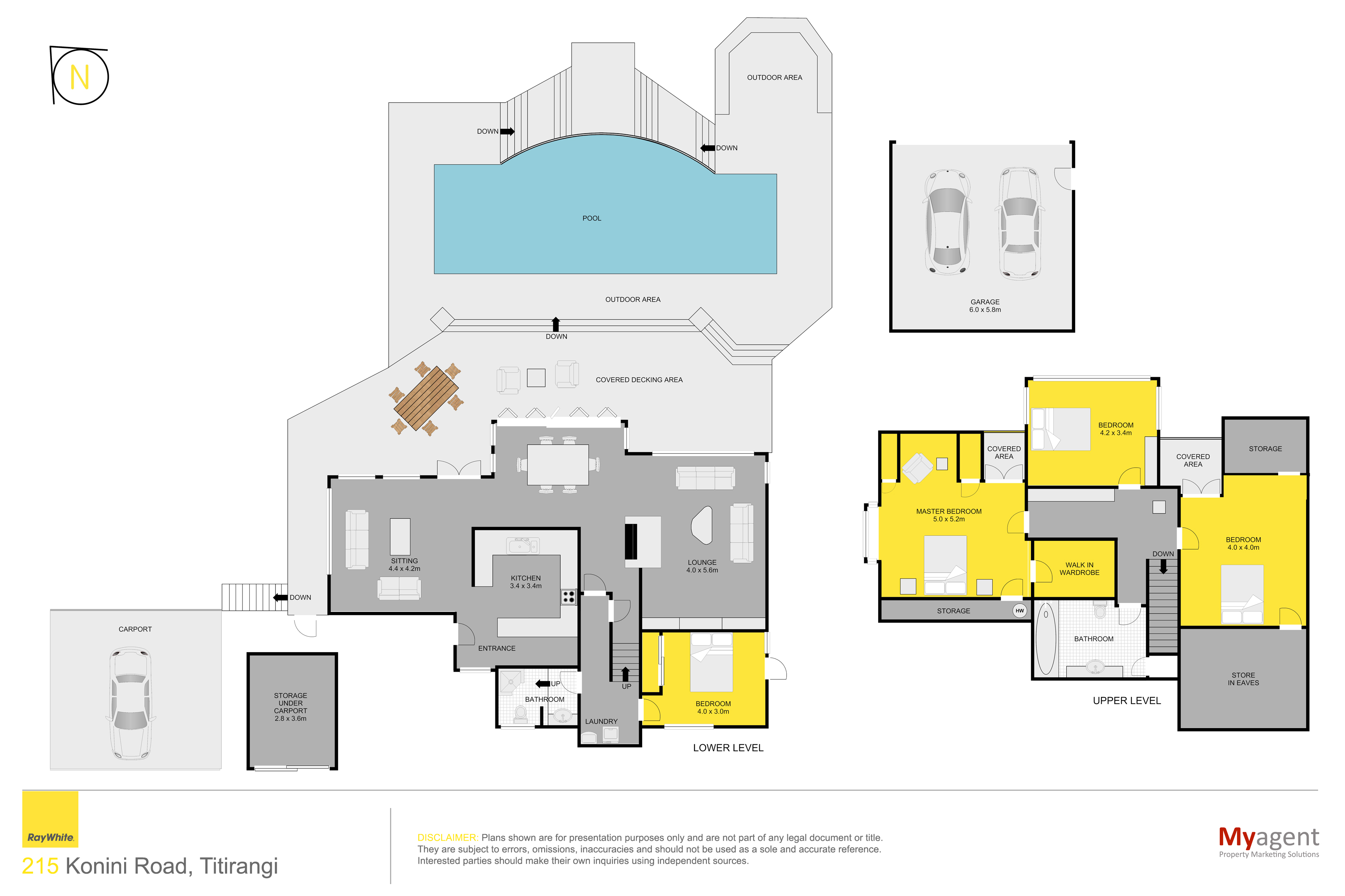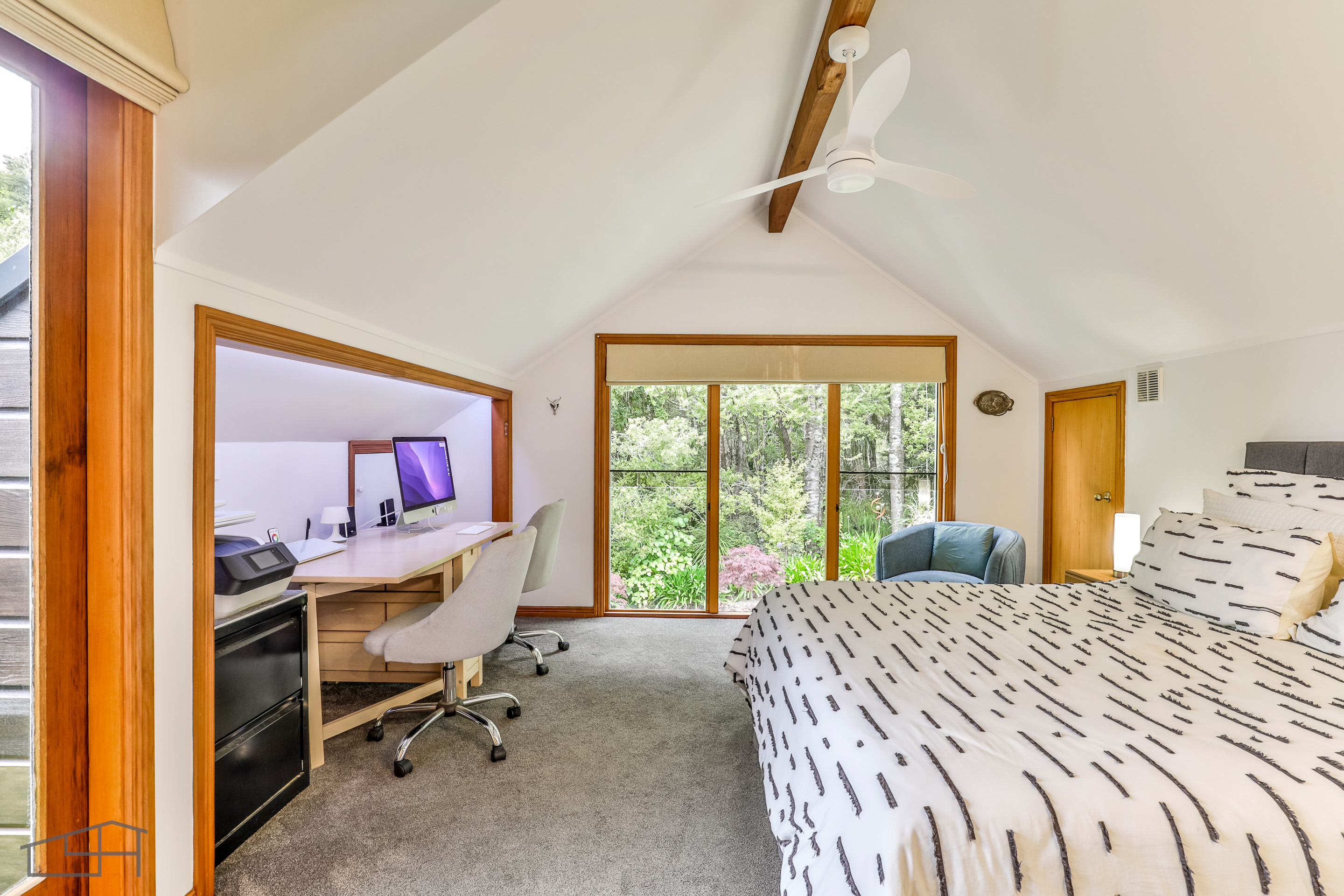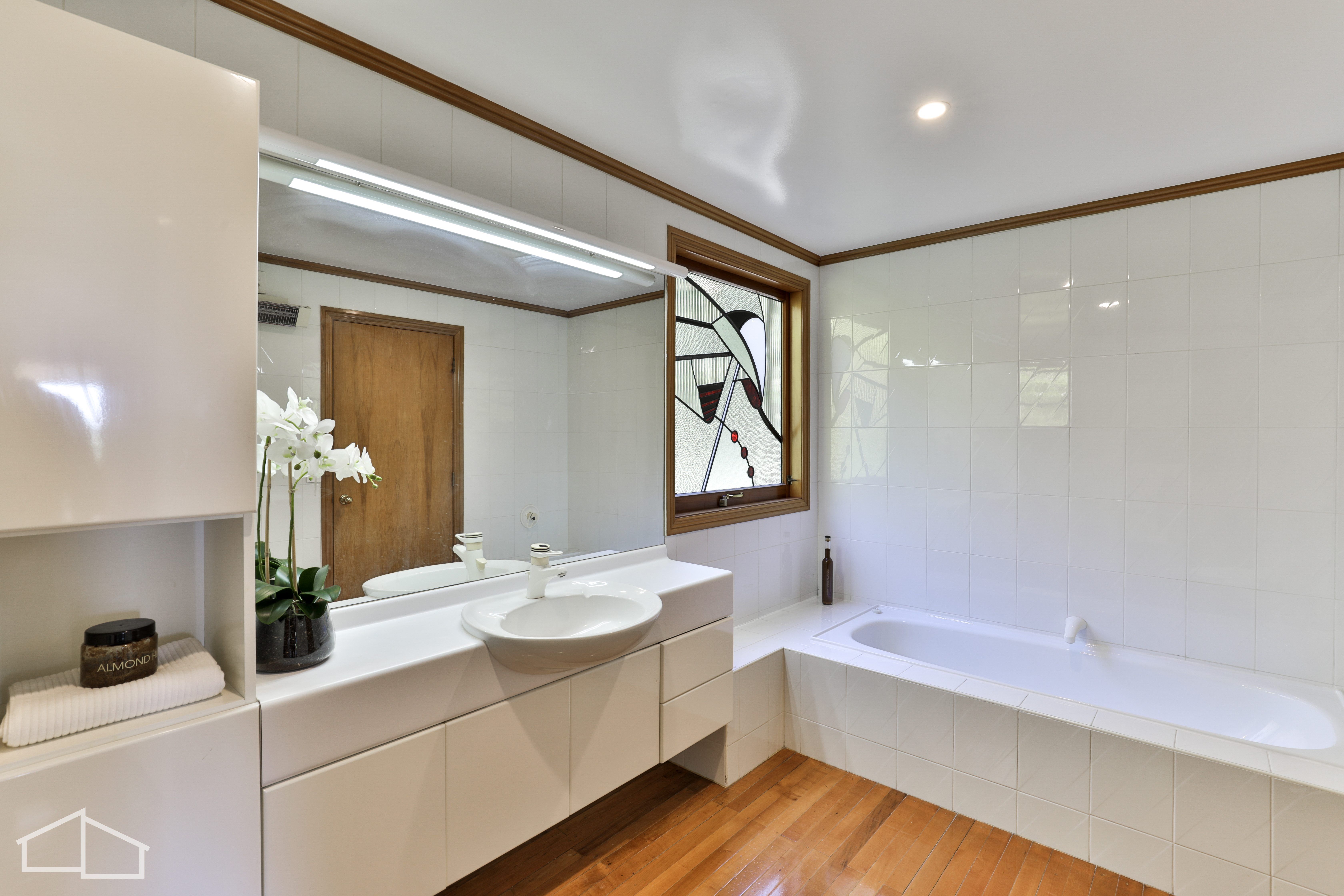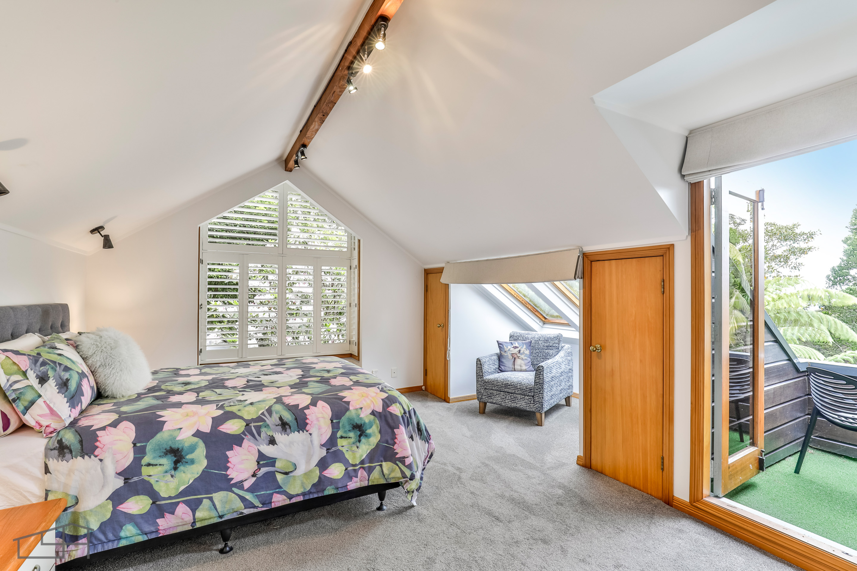 Upstairs a semi-ensuite accompanies the master bedroom, where a private balcony takes in the views across the treetops to the city and harbour. There is a walk through wardrobe and storage corridor. The additional three bedrooms offer a variety of benefits, from wide concertina windows and a second balconette, to a quiet lower level room with external access. All serviced by the full family bathroom (part ensuite) upstairs and a second bathroom with shower on the lower level.